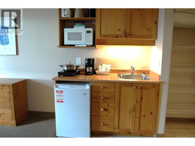 Fantastic opportunity at the Inn at Big White! Best location in the building - top floor, close to the elevator and stairs with a striking view of the Monashee Mountains - but away from the noise of the pool and hot tub and the sight line of the Plaza Chair. This studio unit has a comfy queen bed, table and chairs, wall bed, club chairs, cozy gas fireplace, Optic TV with music and movies, WiFi, galley kitchenette with an induction cooktop, mini-fridge, microwave, & more, & 4 pc bath. Enjoy magical sunsets & weekly fireworks from the comfort of your own suite! Bring your favourite foods & beverages but don't forget to explore all of the amazing eateries at Big White! Steps from the heart of the village, the Inn at Big White offers excellent resort amenities with a relaxing, small town atmosphere. After a day on the slopes, enjoy the breathtaking views from the outdoor pool & hot tub, play in the games/party room, workout in the fitness center, & store your gear in the ski/board locker room. Front desk operates 24 hours for your convenience, and there is a restaurant, the Fat Marmot, on site for those nights when you feel like staying in. Park your vehicle upon your arrival in the secure, heated, underground parking garage and leave it there until departure day! The Inn at Big White is perfectly walkable. Use your unit as much or as little as you like - leave it in the rental pool when not using it and start collecting income right away, winter and summer! GST MAY APPLY. (id:26452)