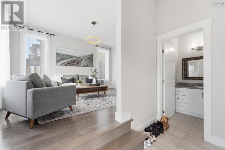 Welcome to 120 Mica Crescent, sitting on a premium lot in the sought-after Governors Brook community of Spryfield. Built in 2018 as the former model home, this Energy Star® certified two-storey offers quality upgrades and a rare private setting. The bright open-concept main level features a modern kitchen with a quartz island and access to the rear deck, where you can enjoy beautiful sunrise views over greenbelt with glimpses of the lake and ocean. Upstairs offers three bedrooms, while the fully finished walkout basement provides additional living space with a fourth bedroom. Set on a premium lot with no rear neighbours, the backyard offers excellent privacy and includes a spacious storage shed. Additional highlights include built-in audio, a mini-split heat pump, and a full home security system with cameras. Conveniently located just minutes from downtown Halifax, parks, and everyday amenities. (id:26452)