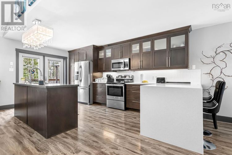 Built in 2016 near a quiet cul-de-sac in Middle Sackville, this 5-bedroom split-entry home is optimized for both privacy and multi-generational living. The main level features the primary bedroom with an amazing ensuite, second bedroom and second full bathroom. The open-concept kitchen, dining and living area with access to the new back deck. A ducted heat pump offers efficient year-round climate control. The bright lower level contains a secondary suite with 3 additional good-sized bedrooms, a kitchen and a living room with rental potential or independent living for an extended family, along with laundry. The property is 1.9 treed acres, with walking pathways, a pond and a shed. Complementing the home is a 24 x 24 detached double garage, which is fully wired, heated, and features a finished loft aboveideal for a home office or studio. Bonus is having a Generlink - this is fueled by a 12500 kw dual fuel generator located in the garage, that powers the entire house and garage. Strategically located within an excellent school district and offering immediate access to Hwy 101, this home balances secluded acreage with modern convenience. (id:26452)