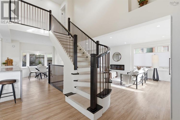 Introducing this impressive property in Bedford's most desirable and prestigious neighbourhood.680 Shore Drive has a modern condo feel with all the pluses of an urban oasis. The main floor's open layout flows easily and you can have a dining room in multiple areas. The living room is a stager's dream flooded with natural light from the large windows, with an electric fireplace and so much space. The kitchen has cupboards aplenty and a center island with a gorgeous marble waterfall countertop. Two bedrooms upstairs each with their own ensuite. The downstairs is completely finished with a rec room, large games room/flex space, full bath, separate laundry and storage room. Convenient access from kitchen to expansive back deck overlooking your low-maintenance garden and fenced yard. Sweet little she shed or man cave with windows and electric fireplace. Walk to the Bedford Yacht Club and all the conveniences of Bedford (id:26452)