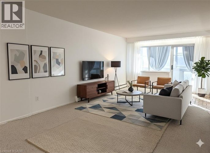 Bright and spacious 2-bedroom condo in the heart of Waterloo. This 6th-floor corner unit features an open layout with plenty of natural light. The large semi-enclosed sunroom is ideal for relaxing in the summer time. The kitchen opens to a generous dining area, and the primary bedroom includes built-in cabinetry and a closet. The second bedroom offers a walk-in closet for extra storage. The unit includes in-suite laundry for added convenience. Located directly across from Westmount Place Mall, this condo is steps from bus routes, the LRT, and just minutes from Uptown Waterloo. Close to shopping, transit, and universities, it’s perfect for first-time buyers, investors, or downsizers. Condo fees include all utilities, heat, hydro, and water, making it a convenient, move-in-ready option. Great value and potential with some cosmetic upgrading. Interior photos are virtually staged. (id:26452)