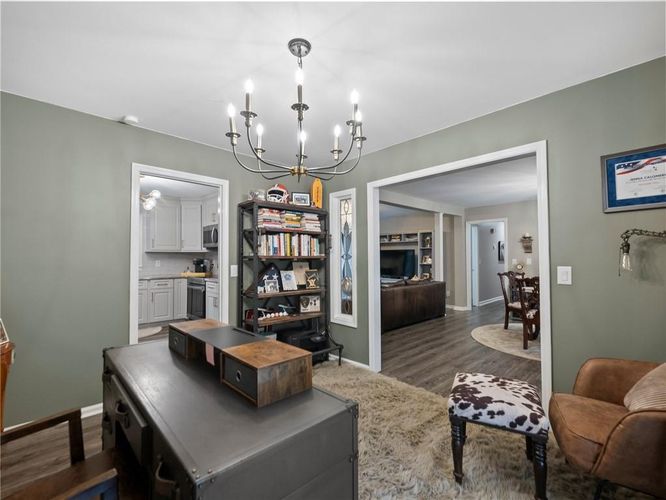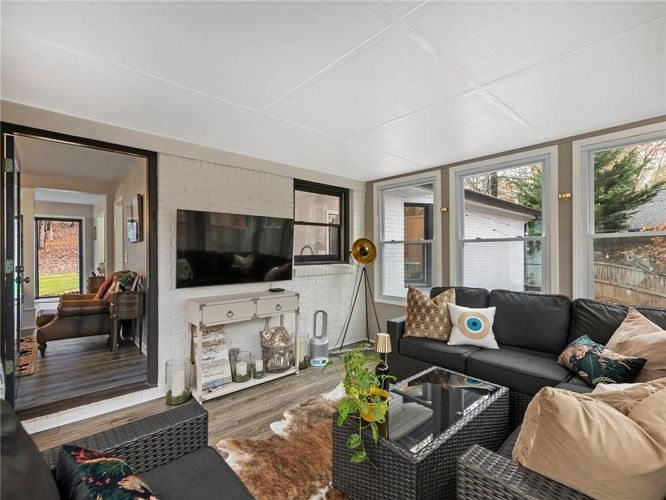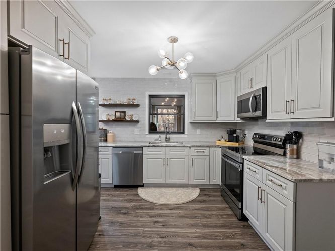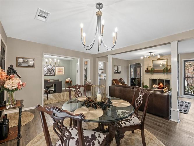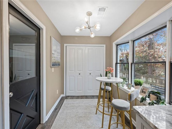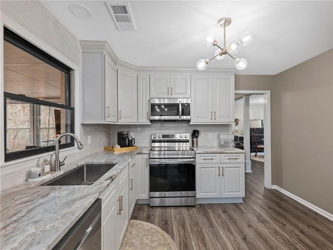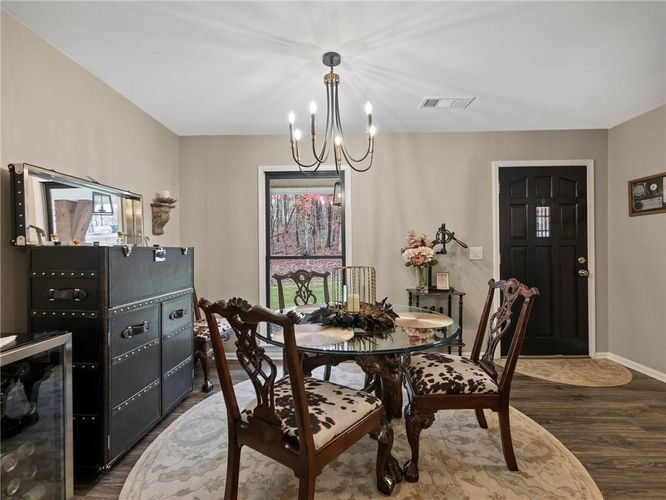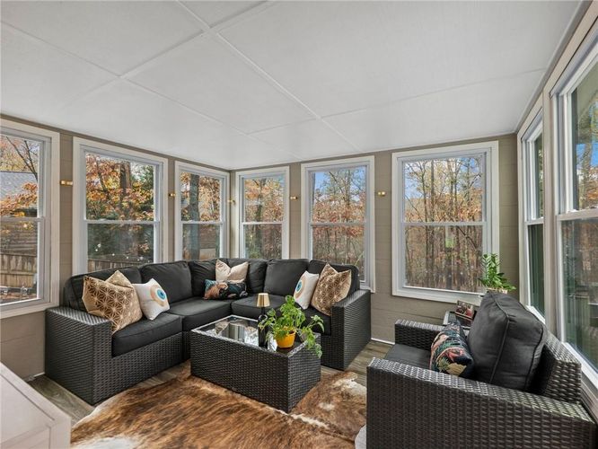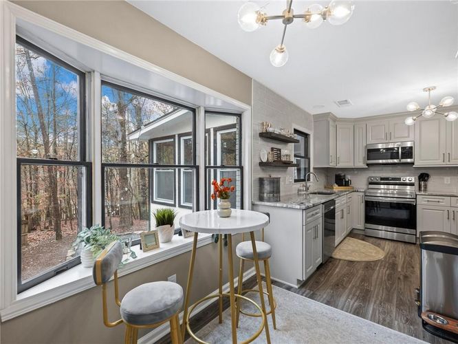 MOTIVATED SELLER! Welcome to this beautifully renovated lake home with a rocking chair front porch, nestled in the peaceful area of Murrayville, Hall County. Minutes to Dawsonville, Dahlonega, and Gainesville! 10 minutes to the new hospital in Dawsonville! Featuring a covered single-slip dock, this property offers serene lakefront living. The home has been completely updated with a new roof, new HVAC, and fresh paint on all four sides. Inside, you'll find a spacious, modern layout with a brand-new sunroom addition that fills the home with natural light. The basement boasts a self-contained mother-in-law suite with easy access from both the inside and outside. Whether you're looking for a short-term or long-term rental property, or a tranquil full-time residence, this home is the perfect retreat. After driving down the long driveway, you will enter the home with all new LVP flooring throughout, formal dining room, formal office room, family room with wood burning fireplace and all new lighting throughout. The kitchen renovation exudes class with the brand new shaker cabinetry with soft close feature and neutral natural stone granite countertops and tile backsplash. The open shelving area gives the kitchen a high end feel along with the all new stainless steel appliances throughout. The primary suite has a walk-in closet with closet system, a small nook filled with natural light to get ready for your day and a totally renovated bathroom with all tiled from floor to ceiling shower with dual vanities. The secondary bedroom and the renovated full bath is stunning and has plenty of storage/drawers in the new vanity. The spiral staircase takes you down to the basement that is set up perfectly for an in-law suite or a perfect place to have a rec space with a full bath, storage room and double closets. There is also a wet bar area that can be used for a coffee bar, wine bar, or add a mini fridge and microwave to now have a kitchenette space. The sunsets are unreal at this home that you can see the water from the back deck. The outdoor firepit area is the ideal spot to share your memories and roast smores. This is the home you have been looking for that is turnkey.