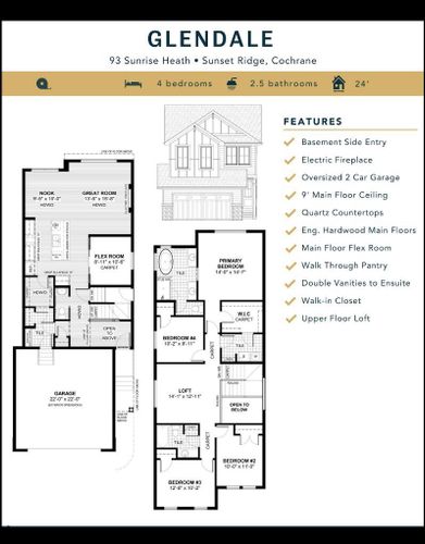 Four Bedrooms & With An Oversized Garage - A True Rarity!Welcome to a unique opportunity in today's competitive real estate market! This impeccable 4-bedroom home is brought to you by the renowned Douglas Homes Master Builder. Presenting the coveted Glendale Model, this sun-soaked residence boasts a west-facing backyard and is conveniently located just a short walk to the future community center in Sunset Ridge.Elegance Meets Practicality:Step inside and be captivated by the abundance of upgrades awaiting you and your family. The main floor welcomes you with an open layout, soaring 9-foot ceilings, and grand 8-foot tall doors. Natural light floods the space through large windows, highlighting the beautiful engineered hardwood flooring throughout.A Culinary Oasis:The heart of this home showcases a spacious dining area and a kitchen that will inspire your inner chef. Revel in the high-end builder's grade appliance package and the striking quartz countertops that adorn every surface. On chilly evenings, gather around the stylishly warm and cozy electric fireplace, creating cherished family memories.Serene Retreat:The deluxe primary suite offers a tranquil escape with a generously-sized walk-in closet and his and her's vanity & sinks - a true oasis of relaxation. An additional feature is the large flex room on the main floor with two 8-foot doors, ideal for those working from home or as a versatile space to suit your needs.Community Perks:For families, this location is a dream come true. Rancheview K-8 School is just a few blocks away, and St. Timothy High School is a short drive south. The future community center and a third school, in the pipeline, will be within walking distance.Convenience and Adventure Await:Escape into the mountains, just 40-45 minutes away on the scenic route. The city of Calgary is a quick 30-minute drive, as is to your nearest Costco, while the airport is an easy 45-minute commute.Your Forever Home Awaits:If you've been searc hing for the perfect fit for your growing family, this exquisite and elegant home is the answer. But don't hesitate; opportunities like this are rare. A brand new 4-bedroom home at this price won't last long. Act now and make it yours today!Pictures from our Glendale Model Showhome. This listing has a slightly different exterior & interior finishing package than as shown in the pictures presented here...(Attention fellow agents: Please read the private remarks.) (id:26452)