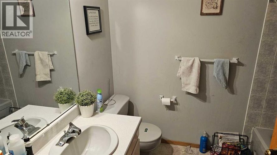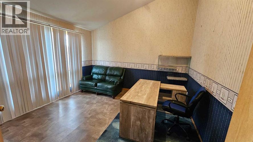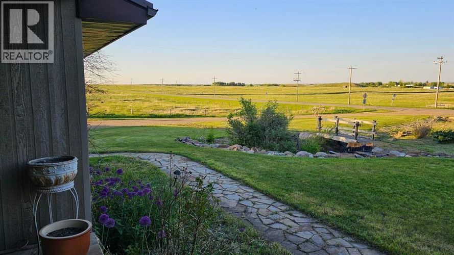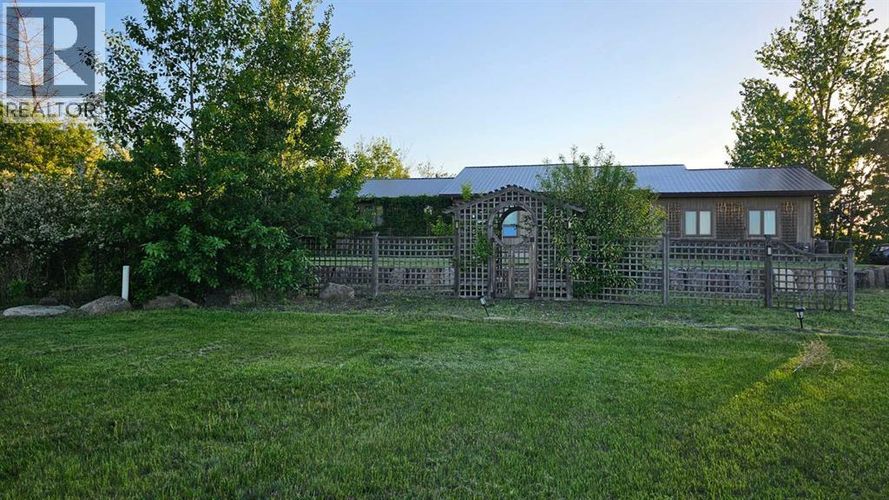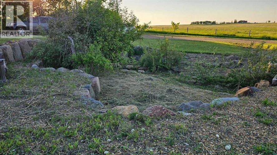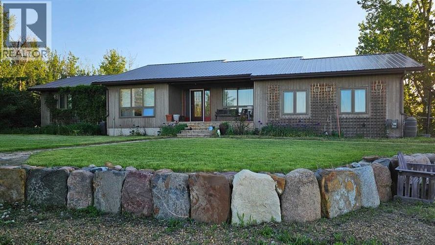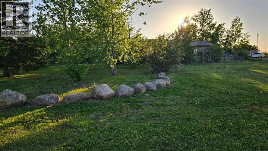 Welcome to Coronation, this 3.21 acre parcel is situated on the north west side, still within the town limits, north of the hospital. There are two parcels, sold together, one with the house -1.09 acres, beautiful landscaping and shrubbery and second lot with a fully fenced 2.12 acre lot with page wire fencing around numerous trees, comes with the 2 metal sea cans and a garden shed, all are included. . This beautiful home is a 1600 plus sq ft bungalow, with metal roof, wood looking(composite) siding, attached double heated garage and a front deck that has stone and rock accents and the overhanging roof. This custom built 1992(approx) home, has 5 bedrooms, three bathrooms and a den that faces east to watch the sunrise and the beauty that lies outside. It also has a large living room with vaulted ceiling(14ft) and a cozy kitchen with an eating area. Finally there is a separate dinning room just off the kitchen area. The windows in this home are extra large and plentiful, with metal covered exterior and wood interior. These add an abundance of light into the home. The west ones also include a large set of patio doors off the living room onto the large west deck. There has been new vinyl flooring put in throughout the upstairs. Downstairs is the large rumpus room, with newer flooring, 2 comfortable bedrooms, a four piece bathroom, loads of storage in the cold room and the utility room, along with washer and dryer and the heating system that is run by the on demand heater as the house has radiant heat throughout the entire building(both floors). Off the living room is a large 20x20 ft deck plus a 12 x 12ft attached deck facing out towards the west. There is a fenced dog run and plenty of room for those who want a garden. With so much potential and an abundance of space this is a one of a kind home to invest in. (id:26452)