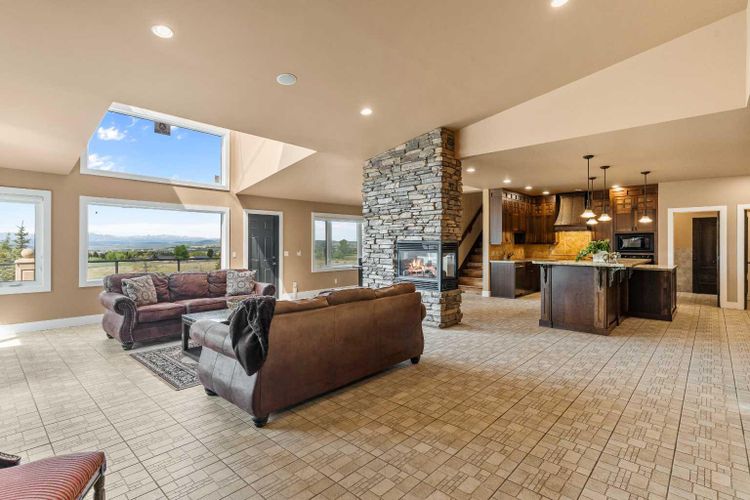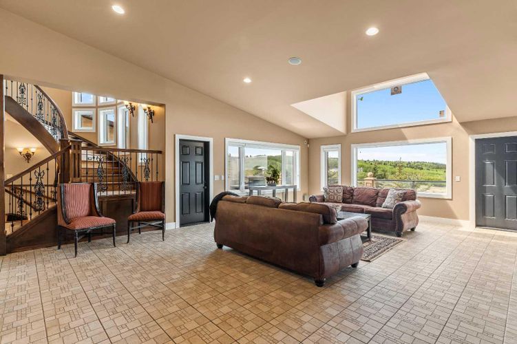 Welcome to 40090 Retreat Road in Cochrane, a custom high-end built home located on 9.17 acres on Retreat Road. This West facing property has a stunning view of the Rocky Mountains, which can be seen all year round. This luxury homes contains 7 bedrooms, and 10 bathroom total. The top level has 3 junior suites which are each equipped with their own ensuite and balcony, and a primary suite which has vaulted ceilings, a luxurious ensuite bathroom, walk-in closet, and fireplace. The lower level contains 1 master suite, a junior suite, and a nanny suite. The spacious kitchen is perfect for entertaining guests, with custom features such as: site-built wood cabinets with cooper inlayed panels, granite counter tops, large multi-leveled island, a spacious pantry, and a Butler’s Kitchen furnished with stainless steel appliances. A formal dining area makes for the perfect space to host dinners, along with its own prep area to help. Other notable features in the home include: 5 gas fireplaces, 1 wood burning fireplace, a mudroom, main floor laundry with a walk-in linen closet, 2 offices, and a library with a seating area. Working from home is made comfortable with a meeting room on the main floor that has direct access from the veranda, this is great for facilitating private client meetings. This private office is fitted with a built in desk and built in cabinetry, also with its own remote entrance. As we move down to the lower level, you will see an entertainment/theatre room, an exercise room, steam room, great room, games/pool room, a sizeable wet bar, a second oversized laundry room with a walk-in linen closet, 2 mechanical rooms with 5 high efficiency furnaces, a sunroom, and an enclosed patio with wood fireplace (with an exhaust fan for the BBQ), hot tub provided within the enclosed space. This estate can be subdivided into 2 acreages, with R2 zoning for a second home. Extensive landscaping has been done on the property, which includes 2 wildlife ponds, a private gate, a n asphalt driveway, room for an RV and other vehicles, a second detached garage that can hold up to 6 vehicles, and an attached garage with 10’’ high doors that can hold up to 4 vehicles. (id:26452)