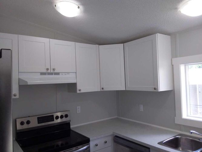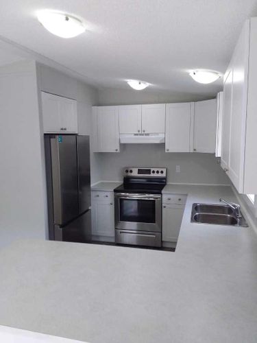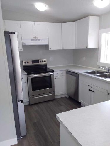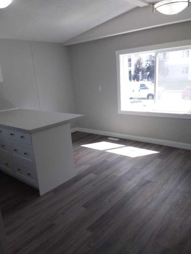 NEW, LOWER PRICE. Affordable living at its best! Available immediately! This is a 3 bedroom, 2 bath beauty including double vanity sinks in the primary ensuite. It has been refurbished with stylish vinyl plank flooring throughout and completely repainted. The bright kitchen has luxurious white cabinets, a huge peninsula and stainless steel appliances - a double door fridge with freezer drawer, glass top stove and built-in dishwasher. A dryer is included. Every inch of this home is clean and fresh! The exterior has been reclad in maintenance free vinyl siding plus a steel roof. New, double paned vinyl windows add to the comfort. This unit is located a short distance to the clubhouse which features a community gathering area with kitchen, a modern exercise room, an 8-ball pool table and games room plus common area playground and bbq area. Calgary Village is a quiet, family friendly community. Financing available at great rates upon approval. Beyond the purchase price, all sites in the park rent for $1,299 per month which includes water, sewer, garbage removal and clubhouse amenities. The clubhouse offers a modern exercise room, a games room with pool table, common areas with large screen t.v., community kitchen, bbq's and children's playground. There are no additional costs for these amenities. Although this sounds high, it includes many amenities not available at other parks. You will find Calgary Village offers the most spacious lots with room for double parking (in most cases) plus storage sheds, etc. Many residents have built fences, decks and other features that are not allowed in other parks. This is a family friendly and pet friendly community. There is no size restriction on dogs, but a limit of two pets per home. When you consider that many condominium projects are experiencing double digit cost increases and special assessments, this is still the most economical option for home ownership. (id:26452)
