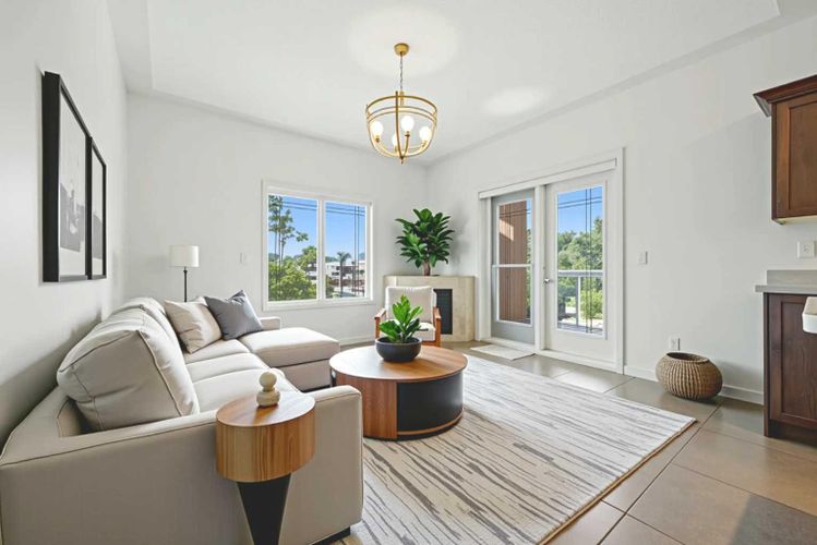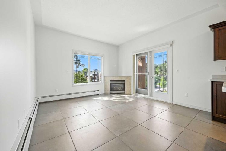 Wonderful, Quiet, Bridgeland location. A 5 Min walk to C-Train, river paths and downtown or hop on the bike path that runs right in front of the building. 2 bedroom, 2 bathroom 3rd floor penthouse corner unit with almost 900 sq ft of living space and a titled underground parking stall with room for storage. This apartment is a bright and cheery space that is freshly painted in light tones throughout, helping the large windows provide lots of natural light. Kitchen is highlighted by dark stained maple cabinets and stainless-steel countertops. An island with pendant lights and a black appliance package gives the entire apartment a luxurious feel. The Livingroom has a corner gas fireplace with a mantle, a big west facing window and French doors that open to the balcony where you will find space to entertain and a gas line for your BBQ. The main living space has 2x2 ceramic tile throughout. The primary is equipped with a walk-in closet and 4-piece ensuite bath. There is an additional 4-piece bath off the Livingroom. The second bedroom has a large west window. There is an in-suite laundry with stacking washer and dryer. This 3rd floor walkup is an idea starter home and will make a great investment. Some photos are virtually staged to highlight decorating options. (id:26452)
