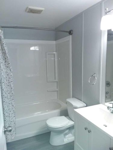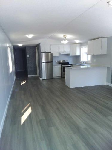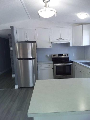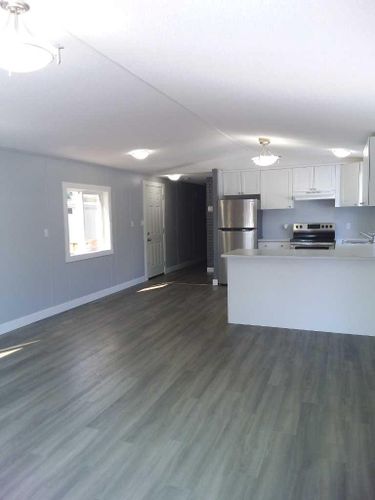 Affordable living at its best! Available immediately! This is a large (16x67 ft.) 3 bedroom, 2 bath beauty including double vanity sinks in the primary ensuite. It has been refurbished with stylish vinyl plank flooring throughout and completely repainted. The bright kitchen has luxurious white cabinets, a huge peninsula and stainless steel appliances - a double door fridge with freezer drawer, glass top stove and built-in dishwasher. A dryer is included. Every inch of this home is clean and fresh! The exterior has been reclad in maintenance free vinyl siding plus a steel roof on 2 x 6 walls for extra energy savings. New, double paned vinyl windows add to the comfort. This unit is located a short distance to the clubhouse which features a community gathering area with kitchen, a modern exercise room, an 8-ball pool table and games room plus common area playground and bbq area. Calgary Village is a quiet, family friendly community. Financing available at great rates upon approval. Beyond the purchase price, all sites in the park rent for $1,299 per month which includes water, sewer, garbage removal and clubhouse amenities. The clubhouse offers a modern exercise room, a games room with pool table, common areas with large screen t.v., community kitchen, bbq's and children's playground. There are no additional costs for these amenities. Although this sounds high, it includes many amenities not available at other parks. You will find Calgary Village offers the most spacious lots with room for double parking (in most cases) plus storage sheds, etc. Many residents have built fences, decks and other features that are not allowed in other parks. This is a family friendly and pet friendly community. There is no size restriction on dogs, but a limit of two pets per home. When you consider that many condominium projects are experiencing double digit cost increases and special assessments, this is still the most economical option for home ownership. (id:26452)