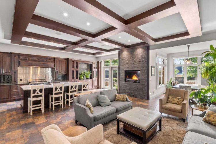 Welcome to custom built elegance in Winston Height-Mountview. Walk in the spacious front entry and be greeted by 20’ vaulted ceilings and a grand staircase with wrought iron spindles. Continue past the entry to a private office with French doors before entering the large open concept living space. A stone-facing fireplace is the focal point of the living room along with the 10’ on-site finished coffered wood-paneled ceiling. The large kitchen features a commanding 9’ island with breakfast bar, a 6-burner Viking gas range with pot-filler, huge refrigerator-freezer combo, wine fridge, and stunning on-site finished dark stained cabinetry. A bright dining room with views of the backyard completes this space. Also on this level is a two-piece powder room. The upper floor has a huge primary retreat with separate sitting area, a stunning 5-piece bathroom with separate soaker tub, separate tiled shower with body spray package, dual sinks, and a large walk-in closet. Two other large bedrooms are also on this level along with a 4-piece main bathroom. The basement level was renovated by the current owners with over $170,000 of finishings featuring a radiant heated, polished concrete floor, large family room with custom built-ins and gas fireplace, a built-in study area with room for two, two more bedrooms, a 4-piece bathroom, and large storage room. There is also access from the basement to the garage via a separate stairway. The garage is double oversized with enough room for your vehicles and toys. The house is wired for sound and comes with a Russound system. The fully fenced backyard has a large patio, gas BBQ line, and green space. This home is built by a reputable Italian builder and the quality shows in what can be seen and what isn’t seen including double joists used to construct the sub-floor and solid core doors. Steps away from The Winston Golf Club, this home is close to schools, shopping and more and is within a short commute to the downtown core. (id:26452)