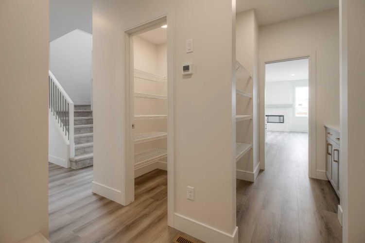 Welcome to the "Comrie" by Stranville Living, located in the desirable Lethbridge community of Southbrook. This new home is situated merely a few hundred meters from Dr. Robert Plaxton K-5 public elementary school, whose property includes a new playground, soccer pitch, baseball diamond, and a basketball court. Southbrook is conveniently located minutes away from big box shopping, various restaurants, and the VisitLethbridge.com arena and event center. This award-winning two storey home is well laid out and boasts a main floor rivaled by few homes of this size. It incudes a beautifully appointed kitchen with Adora Cabinets with gold accents extended to the ceiling, fully tiled backsplash, and quartz countertops for both the base cabinets and island. Stranville Living's top tier appliance package includes a seamlessly integrated paneled Fisher & Paykel fridge, paneled dishwasher, induction cooktop, built-in hood fan, and a stainless steel wall oven and microwave combo unit. There is a set of base cabinets with matching quartz countertops and floating MDF shelving in the butler's pantry, which walks through to the mudroom and garage entry. The centerpiece of the living room is a linear fireplace set into a tiled build out with a painted MDF mantle surrounded by a set of large windows that face west and provide ample natural light. Adjacent to the dining room is a large sliding glass door that exits onto your future deck and rear yard that backs a serene green strip with walking paths. The upper level includes a great primary bedroom with a huge walk-in closet and ensuite, two more bedrooms, a main bath, as well as a media room and large laundry room. High efficient mechanical equipment, Low E windows, and spray foam in the rim joists help keep your heating ad cooling costs in check. Very cool house on a terrific street in south Lethbridge! Photos contain virtual staging. There's nothing like NEW! (id:26452)