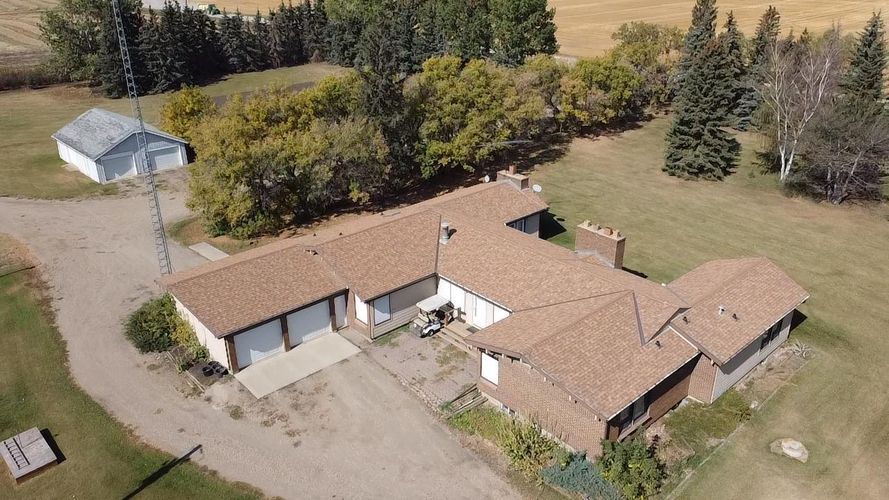 Tucked away among mature trees, this beautifully maintained acreage offers the perfect blend of privacy, space & convenience, just 37 mins to Calgary Airport, 26 mins to Airdrie, under 50 mins to downtown Calgary & 17 mins to Crossfield. This sprawling bungalow on 5.56 acres has over 6,300 sq ft of living space (3,237 sq ft up + 3,126 sq ft down), making it an incredible opportunity for large families or multi-generational living, with solid bones & endless potential to personalize. Inside you’ll find 5 bedrooms up(one can be an office or flex space) & 2 down, 3.5 bathrooms up & 1 full bath down, vaulted wood ceilings throughout the main level, a large kitchen overlooking the breakfast nook, a massive family room with stone faced wood burning fireplace, & patio doors leading to a private concrete patio, a bright living room also with stone faced wood burning fireplace & formal dining area, & a main-floor laundry room with sink & cabinetry for convenience off the back entry & garage. The fully finished basement is designed for entertaining & flexible living, featuring a huge rec/family room with another stone wood-burning fireplace & adjacent wet bar, 2 bedrooms, full bathroom, cold room, kitchenette, additional living/games room, flex space & a large storage area, plus stairs to access to the garage directly. Outside, the property impresses with a 72x40 heated, insulated Quonset with concrete floor, a 40x30 detached garage & a 24x24 attached garage, along with a huge garden area perfect for growing your own food & room for animals or recreation. Additional highlights include newer shingles & 2 zoned boilers with thermostats throughout the home for efficient comfort. This acreage is the perfect place to raise a family, create your dream hobby farm, or simply enjoy the serenity of country living with quick access to nearby communities & city amenities. (id:26452)