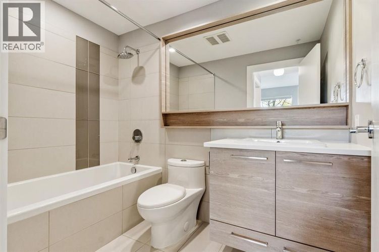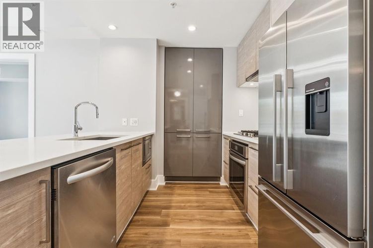 Experience urban living at its finest in this exceptional courtyard level 2 bedroom 2 bathroom condo with direct access to a stunning garden sanctuary. This inviting home offers the perfect blend of city convenience and serene tranquility with its gorgeous, oversized terrace. Inside, you'll discover a thoughtfully designed open-concept layout featuring soaring 9-foot ceilings, elegant quartz countertops, and a gourmet kitchen equipped with top-of-the-line appliances, including a gas cooktop and built-in oven. The primary bedroom offers a spacious sanctuary with ample room for a king-sized bed, a well-appointed 4-piece ensuite, and an abundance of closet space. The generously sized second bedroom gives you options for an inviting guest suite or comfortable home office. Rest easy knowing your vehicle is secure in the titled underground parking stall, protected from the elements year-round. Plus, enjoy the convenience of a separate storage unit to keep your belongings organized and easily accessible. This pet-friendly building offers fantastic amenities including a fitness room, party room, bike storage, and community gardens. Immerse yourself in Bridgeland's vibrant cultural scene with easy access to shops, cafes, and restaurants. Escape to nearby parks, the Bow River pathway, or your own private courtyard patio. More than just a condo, this is an urban sanctuary where you can embrace the best of both worlds. Live effortlessly, work efficiently, and recharge in nature – all from this exceptional Bridgeland address. Be sure to check out the virtual tour! (some photos have been virtually staged) (id:26452)