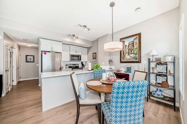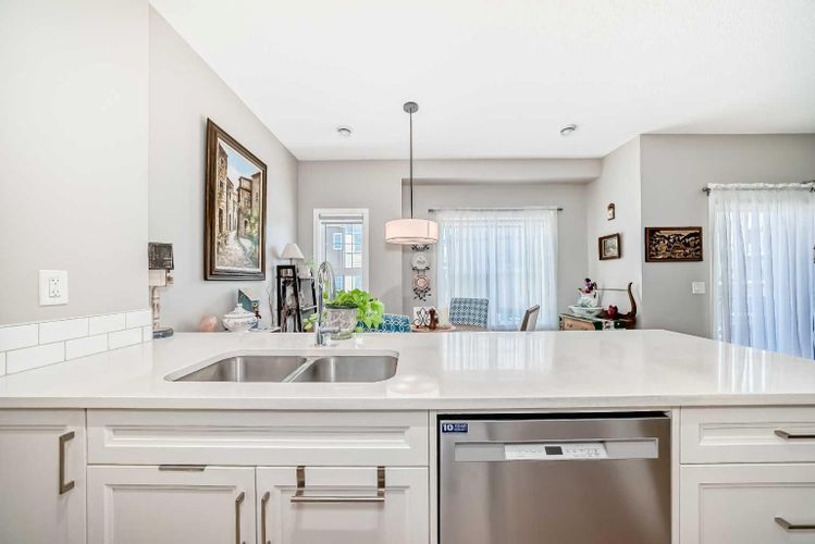 Welcome to this stunning, Immaculate townhome located in the highly desirable community of Fireside in Cochrane, where breathtaking views of the pond and surrounding green space provide a tranquil, nature-inspired backdrop to everyday living. This upgraded home shows 10/10 and features a modern style with everyday functionality and boost upscale finishes such as wide plank flooring, soft plush carpeting, elegant porcelain tiles, soaring 9-foot ceilings, and energy-efficient LED lighting throughout. The heart of the home is the gourmet kitchen, equipped with sleek quartz countertops, white Euro shaker-style cabinetry, stainless steel appliances, a convenient breakfast bar, soft-close pull-out drawers, & pantry. The open concept is filled with natural light that flows seamlessly from an abundance of large windows and patio doors, onto two private balconies, offering a perfect extension of your living space where you can enjoy morning coffee’s or unwinding in the evening while soaking in the view of the pond and green space. There are two generously sized bedrooms, including a bright, spacious primary retreat complete with a large walk-in closet, along with a stylish full bathroom. An elegant half bath (powder room) with both bathrooms featuring quartz countertops and chic, modern light fixtures. The home also includes a full-sized laundry area with a stacked washer/dryer conveniently located on the upper floor, wide staircases for easy access, and a spacious utility room with extra storage, as well as a larger, separate dedicated storage unit, and a titled parking stall siding to your front door, conveniently located for off loading groceries and every day errands. Situated in a well-managed, family-friendly complex, this property is ideally located just steps to schools, Bullrush Park, scenic walking paths, ponds, gazebo, benches, and green spaces, making it perfect for peaceful walks, and outdoor relaxation. Fireside is a vibrant and growing community offering ex cellent schools, parks, New skatepark, eateries, shopping, fitness and recreation facilities, and all essential amenities- easy access to the mountains with approximately 1 hour drive to Banff and Canmore, where you can enjoy close up views of the Rocky Mountains and world-class hiking in summer or Ski trips in the Winter and only minutes to Calgary. Great value for the discerning buyer. (id:26452)