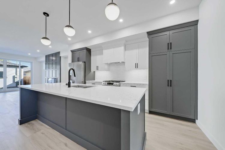 BRAND-NEW DETACHED, built with care and precision by AMSquared Custom Builders. The AMSquared approach is simple: if they do it right the first time, they’ll never need to address it again, Something to keep in mind when shopping around compared to other new infill builders! MOVE-IN READY AND DESIGNED WITH EVERYDAY LIVING IN MIND, a concrete wraparound walkway leads you to the clean, modern exterior with TRIPLE PANE OVERSIZED WINDOWS THROUGHOUT. Step inside and let the open-concept main floor welcome you in. Luxury vinyl plank flooring extends throughout. The front dining area, framed by an oversized window overlooking the quiet street, sets the stage for cozy dinners and festive gatherings. Just beyond, the central kitchen commands attention with sleek dual-tone cabinetry, quartz countertops, a tiled backsplash, and stainless steel appliances, including a 5-burner gas stove. The oversized island doubles as a breakfast bar, while a pantry closet just off the kitchen keeps everything neatly tucked away. There’s even enough room for a breakfast table, illuminated by an oversized main floor window if you decide to convert the front room into an additional living or den area. In the rear living room, comfort meets design with an electric fireplace framed by a panelled accent wall. Dual sliding glass doors open to your private backyard retreat, where a large deck and grassy area offer space for year-round enjoyment. Tucked behind the living room, a mudroom connects to the 22’2” x 20’2” double detached garage via a concrete walkway, complete with 200AMP service for future Electric Vehicles and buried utility lines to the house. A convenient 2pc powder room completes the main level. Upstairs, plush carpeting adds warmth while oversized windows in every room fill the space with natural light throughout. The primary suite is a peaceful retreat featuring a walk-in closet with custom organizers and a spa-inspired 5pc ensuite with heated tile floors, dual vanities, a soaker tub , and a floor-to-ceiling tiled walk-in shower. Two additional bedrooms with oversize windows share a Jack-and-Jill bathroom mean no kids need to be in the hallways at evening time. Finally, a large laundry room, (compared to other tiny & tight spaces) offers quartz counters, cabinetry, a folding surface, storage space behind the door, and a large skylight. The fully finished basement expands your living space with a large rec room, fourth bedroom with additional heated floor 4pc bathroom, plus extra storage space under the stairs. Nestled on a peaceful street in Highland Park, this home offers a unique mix of city living and community charm. It is conveniently close to creeks, parks, and playgrounds. During weekends, enjoy a walk through nearby Confederation Park, relax with a coffee at a local café, or grab a Blizzard from Dairy Queen on your way! Families will appreciate the proximity to local schools and the Calgary International Airport is an inexpensive UBER Ride away! (id:26452)