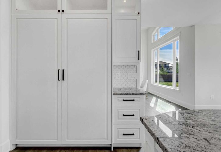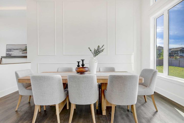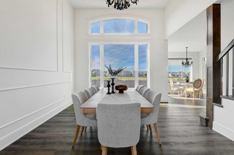 Every detail of this custom-built home in Whispering Ridge has been thoughtfully built to impress, and it does, from the moment you walk through the front door! Set on a 72' x 167' lot with no rear neighbours and county taxes,this property backs onto the pond and walking trails, offering privacy,beauty,and space to breathe.Coffered ceilings and a statement chandelier make an unforgettable first impression. The living room is bright and welcoming, with three large windows that fill the space with natural light.A gas fireplace with a custom maple mantle adds warmth and character,while the coffered ceilings with uplighting bring added dimension.From here,the formal dining room flows beautifully, a space that feels both elegant and inviting. Custom wall moulding, a striking chandelier, and oversized triple windows make it ideal for large gatherings. At the heart of the home, the refined kitchen brings together form and function with stunning results. Cream toned maple cabinetry, granite counters, and a truly massive island make it a natural gathering place. High end appliances include double ovens, an induction cooktop, and a built-in double freezer that blends seamlessly with the custom cabinetry. The butler’s pantry keeps everything tucked away, and a casual dining nook surrounded by windows makes the most of the scenery, with a door leading to the back deck, made for summer meals outside (deck to be completed). A full bathroom with dual access connects to a spacious main floor bedroom — ideal for guests, multigenerational living, or a refined home office. The rear entry adds style and function with custom built lockers, shelving, and hooks. Upstairs, custom built newel posts lead to a primary suite that feels like a private retreat! The bedroom is generous in size, with a sitting area framed by three windows overlooking the pond and trails. Step out onto your private balcony, designed for a hot tub or morning coffee. The ensuite features heated tile floors, dual vani ties, custom storage towers, an air tub, water closet, and a massive tiled shower with rain head and body sprays. The walk-in closet includes built ins, an island, and a laundry chute. Upstairs also features two large bedrooms and a bath with dual sinks and cheater access. Downstairs, heated floors run throughout and the expansive family room is anchored by a wet bar. The custom theatre is a showstopper, with real constellations, tiered seating, and a mural by a local artist. Two bright bedrooms and a full bath complete the level. The backyard is made for summer evenings, with a stamped concrete fire pit pad and no rear neighbours, perfect for hosting friends! The finished triple garage is a true standout, with easy clean metal walls, epoxy floors, and floor drains in every bay. Triple-pane windows, dual furnaces, A/C, smart lighting, and custom finishes throughout — this home is luxurious, practical, and one-of-a-kind. Call your REALTOR® today to book your private showing. Ask your realtor for list! (id:26452)