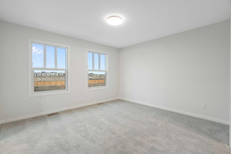 There’s a feeling you get the moment you walk through the doors of 680 Buffaloberry Manor SE - a sense that life’s next chapter is about to unfold. Perfectly positioned in Logan Landing, one of Southeast Calgary’s most anticipated new master-planned communities, this brand-new Cedarglen Homes build isn’t just a house - it’s the promise of a more inspired way to live. Natural light floods through oversized windows, illuminating an open-concept layout designed for connection. The kitchen is sleek, modern, and effortlessly functional & it anchors the main floor with a large island, quartz countertops, and contemporary cabinetry. You’ll get to choose your own appliances at the builder’s supplier with an allowance of $6900. The kitchen flows seamlessly into the living and dining spaces, where laughter, conversation, and everyday life feel right at home. Step through to the back deck, where weekend grilling and golden-hour sunsets become a ritual. A mudroom and powder room complete the thoughtful main-floor design. Upstairs, discover three spacious bedrooms, each with its own walk-in closet - a rare luxury that keeps everything beautifully organized. The primary suite feels like a boutique retreat, featuring a spa-inspired ensuite with dual vanities and a glass walk-in shower. The walk-through closet connecting directly to the laundry room is a detail that quietly transforms daily life, making every morning just a little easier. Below, the undeveloped basement with a side entrance and 3-piece rough-in offers endless potential - whether you dream of a suite for income potential (subject to City of Calgary approval), a media room, or a home gym. Outside, the curb appeal is instant and lasting, with James Hardie siding and stone accents giving the home a timeless, modern edge. Life in Logan Landing means more than just beautiful homes - it’s about belonging to a growing community shaped by parks, pathways, and future shops all just minutes from your door. This is a neighbour hood built for connection, convenience, and the kind of lifestyle that keeps getting better with time. So don’t just find a place to live - find a place to grow, to gather, and to thrive. Your next chapter begins here. Book your private showing today. *Some photos are virtually staged.* (id:26452)