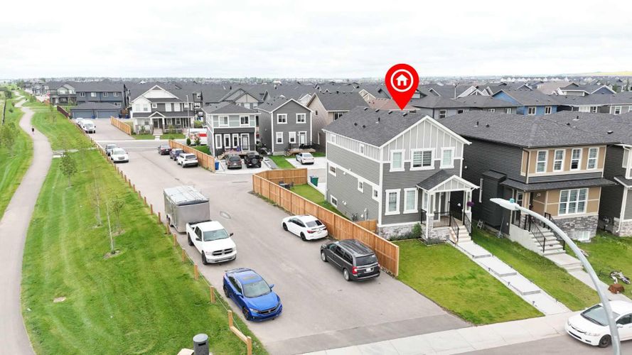 CORNER TRADITIONAL LOT | SEPARATE ENTRANCE TO THE BASEMENT | LOT OF UPGRADES FROM TRICO BUILDER | CONVENIENT RV PARKING THROUGH THE ALLEY. Welcome to this beautifully designed laned home in the desirable community of Midtown, ideally situated on a rare traditional corner lot next to green area & walking trail with excessive outdoor space at the front, back, and sides—perfect for summer BBQs, family gatherings, or a fun play area for the kids. This beautiful North-facing home offers the perfect orientation for natural light lovers — with abundant sunlight streaming into the backyard from morning to dusk. Whether you're enjoying your morning coffee, tending to a garden, or entertaining guests, the sunlit outdoor space creates a warm and inviting atmosphere all day long. Step inside to an inviting open-concept main floor with soaring 9-ft ceilings and an abundance of windows that flood the space with natural light, keeping it bright and cozy all day long. The layout offers a spacious front living area that creates a cozy ambiance, a dining space at the back, and a gourmet kitchen at the center—truly the heart of the home. The chef’s kitchen features ceiling-height cabinetry, a large central island with QUARTZ countertops, premium stainless steel appliances, including a gas stove and hood fan, upgraded lighting with pot lights , plenty of storage & spacious pantry provides additional storage to keep everything organized and within reach. A convenient half bath completes the main level, leading out to a rear deck, a generous backyard, and the concrete pad for Double Car Garage. Upstairs, you’ll find three generously sized bedrooms, including a primary retreat with a walk-in closet and private 4-piece ensuite. The two secondary bedrooms are well-sized and share a centrall y located full bathroom. All full bathrooms feature upgraded tiles flooring, undermount sinks & timer-controlled exhaust fans. For added convenience, the Whirlpool washer and dryer are also located on the upper level which also features tile flooring. The home also includes a full basement with 9-ft ceilings and a separate side entrance, offering endless potential for future development—whether it’s a legal suite, home gym, or entertainment space. Located in the vibrant, family-friendly Midtown community, this home offers access to beautiful walking paths, parks, a central pond, and is just minutes from schools, shopping, and dining. With quick access to Highway 2, commuting to Calgary is fast and stress-free. This is a rare opportunity to own a stylish, move-in ready home on a corner lot in one of Airdrie’s most sought-after neighborhoods. Make sure to view the virtual tour for a complete walkthrough of the home. (id:26452)