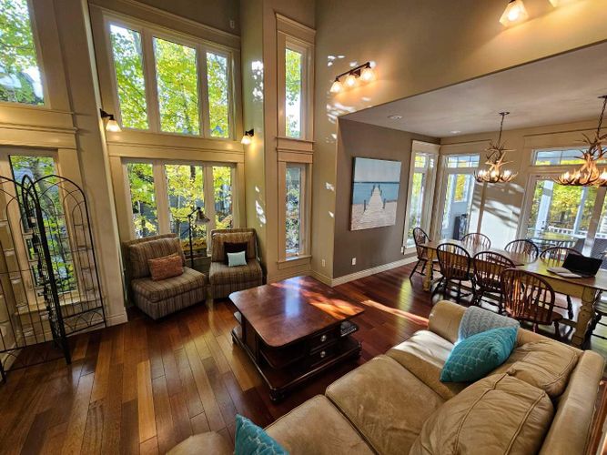 Indulge in the epitome of lakeside luxury with this extraordinary vacation home nestled within the captivating Meridian Beach subdivision on the shores of Gull Lake. As you step onto the property, you'll be greeted by a sense of enchantment and exclusivity that's truly unparalleled. Situated right along the canal's edge, this home grants you the privilege of having your very own private dock. Whether you're an avid boater, a fishing enthusiast, or simply someone who appreciates the tranquility of water, this feature promises endless opportunities for relaxation and recreation. Designed with gatherings in mind, this haven offers a generous layout of 6 bedrooms, accommodating up to 15 guests with ease. The thoughtful layout ensures that everyone has their own space while fostering an atmosphere of togetherness. The tall vaulted ceilings command attention, adding an element of sophistication that's nothing short of impressive. Your heart is sure to be captivated by the 3 seasons room, a masterpiece of comfort and charm. Equipped with a gas fireplace, this room invites you to revel in the beauty of nature while being enveloped in warmth. With its sweeping 180-degree views, it becomes a haven for relaxation, contemplation, and joyful conversations. Whether you're sipping your morning coffee or sharing stories under the starlit sky, the 3 seasons room offers an experience that's both captivating and cozy. Step out into the backyard, and you'll discover your own private escape—an idyllic retreat where you can create memories reminiscent of camping adventures, all while enjoying the luxury of a beautifully appointed home. Moreover, this home boasts multiple living areas that cater to your desires regardless of the season. Whether you're unwinding by the cozy fireplace in the colder months or hosting lively gatherings in the airy, open spaces during the warmer seasons, this home provides an inviting ambiance that's perfect for creating cherished memories with friends and fam ily all year round. The generous sized bedrooms allow the space to rest & relax while accommodating for many needs. This home isn't just a property; it's an embodiment of refined living, a sanctuary of leisure, and a canvas for unforgettable experiences. To immerse yourself in the opulence and serenity that Meridian Beach has to offer, this is an opportunity to seize a slice of paradise and make it your very own. (id:26452)