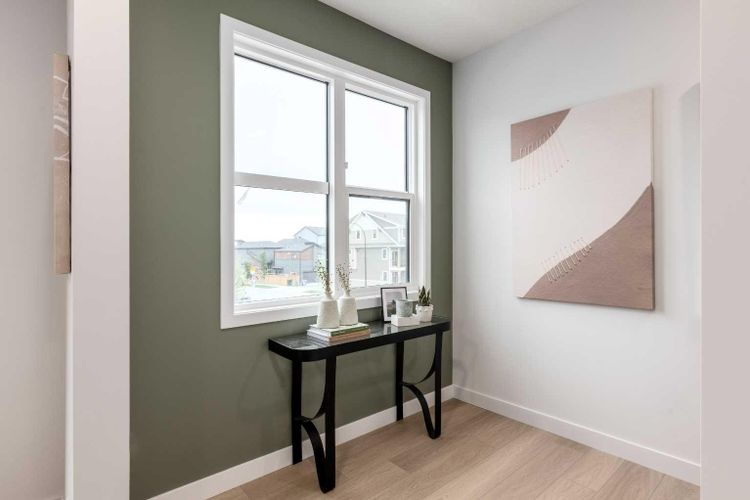 WHEN HOME DOUBLES AS YOUR OFFICE, IT NEEDS TO DO MORE THAN LOOK GOOD.This three-storey townhome in Woodland at Alpine Park was built for the work-from-anywhere crowd — people who want sunlight, flow, and an address that makes getting out of town as easy as logging off.On the ground floor, there’s room to breathe before the day starts. The front entry actually feels like one, not a bottleneck. The flex room catches the western light all afternoon — bright, quiet, and just far enough from the kitchen to feel like you’ve gone somewhere. It’s the kind of workspace that keeps you focused, then doubles as a yoga mat zone or creative corner when the laptop closes. And when it’s time to hit the road, the insulated double garage makes early-morning drives and weekend escapes effortless.Up one level, everything loosens up. The living area takes in the west exposure, keeping the space bright and grounded. At the back, the kitchen layers design and function — quartz counters, full-height backsplash, chimney hood, and an island that becomes whatever the day calls for. Step through to the 17’11” × 6’8” balcony, where coffee breaks, sunset wine, and mountain-planning sessions all feel equally at home.Upstairs, the primary bedroom keeps it calm with a walk-in closet and three-piece ensuite that make mornings feel easy. Two more bedrooms, a full bath, and upper-floor laundry keep everything moving without chaos.Finishes stay timeless: durable LVP, layered lighting, and a modern mix of exterior materials that give Woodland its clean architectural edge.And then there’s Alpine Park — Calgary’s southwest gateway to everywhere. Close enough to the city to keep your commute short, yet perfectly placed for spontaneous mountain runs. Possession is expected in mid-November, just in time to settle in before the snow flies. Come see why Woodland isn’t just where you live — it’s where your week finally finds balance. • PLEASE NOTE: Photos are of a finished Showhome of the same model – fit and finish may differ on finished spec home. Interior selections and floorplans shown in photos. (id:26452)