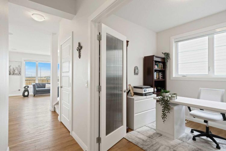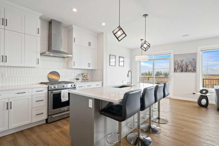 Say “hello!” to this charming Creekstone walkout home. Tucked away on a quiet cul-de-sac, this upgraded single-family home sits on an oversized, pie-shaped lot backing directly onto a greenbelt walking path, with completed landscaping, open views of nature, and even downtown skyline views and Stampede fireworks in the distance.Inside, timeless design meets modern comfort. Wide-plank luxury vinyl flooring grounds the main level, while 9’ ceilings, wrought-iron railings, and large windows create a bright, welcoming flow. The heart of the home is the beautifully curated, highly upgraded kitchen with KitchenAid appliances, including a gas range, chimney hood fan, quartz countertops, tile backsplash, walk-through pantry, and an oversized island perfect for gatherings. The spacious great room centers around a floor-to-ceiling tile fireplace, while built-in speakers throughout the home (controlled via the Sonos app) set the mood for every occasion. A private main-floor office enclosed by double French doors offers a quiet workspace. Step out to the wraparound deck to enjoy peaceful greenbelt views and watch the sun set over your fully landscaped yard, which slopes gently away from the home.Upstairs, a central bonus room anchors the second floor, offering separation and privacy between bedrooms. The primary suite is a serene retreat with automatic blinds, a spa-inspired ensuite featuring dual sinks with tons of counterspace and storage, a tiled walk-in shower, a deep soaker tub, and a generous walk-in closet. Two additional bedrooms (each a great size) are located on the opposite side of the bonus room, along with a stylish 4-piece bath and a dedicated laundry room that’s on every mom’s wishlist!Downstairs, the bright unfinished walkout basement features oversized windows and is roughed in for a future bathroom, ready to be developed into your dream rec area, additional bedrooms, or a legal suite (subject to City approvals).The exterior is wrapped in James Hardie bo ard for lasting durability, and the insulated, drywalled double attached garage adds everyday convenience.Located in Pine Creek, one of Calgary’s most scenic and fast-growing new communities, this home offers quick access to Stoney Trail, Macleod Trail, 210 Ave, Township Plaza, Legacy’s shopping districts, and Spruce Meadows, with future schools planned nearby. With its natural pathways, playground down the street, family-friendly energy, and city conveniences close at hand, this move-in-ready walkout delivers the space, finishes, and lifestyle you’ve been waiting for, without the wait to build.Your next chapter begins here. Book your private viewing today and don't forget to WATCH THE VIDEO! (id:26452)