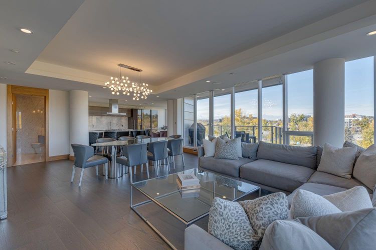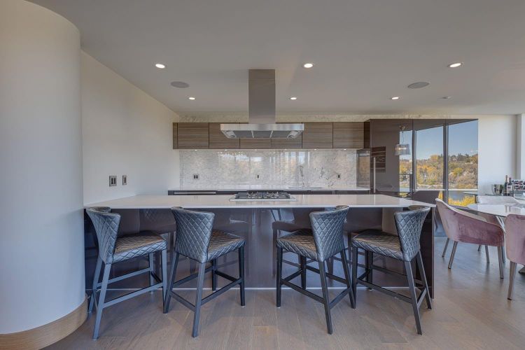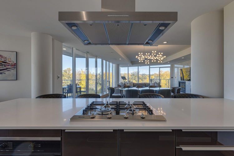 Amazing river views plus the epitome of luxury living in this exquisite original owner residence located in The Concord building, a prestigious address across from the iconic Peace Bridge in Eau Claire. A private elevator leads directly to your unit's foyer, ensuring exclusivity & privacy that is rare in urban living. Floor-to-ceiling windows facing the river flood the space with natural light, w/unobstructed NW & E views. Step inside through elegant double glass doors & be captivated by the open floor plan, which spans nearly 2,000 sq. ft. This stunning unit showcases features such as Control 4 automation, hardwood flooring, LED lighting, built-in speakers, marble finishes, and heated bathroom floors for added comfort.At the heart of this luxurious residence lies the Poggenpohl kitchen, equipped with white stone countertops, a spacious island that seats four, and top-of-the-line Miele appliances, including a gas cooktop, built-in refrigerator, and wine fridge—ideal for both cooking & entertaining.The formal dining room, adorned with a stunning chandelier, seamlessly flows into the expansive living room, which includes access to two private balconies—perfect for morning coffee or evening cocktails—while a cozy gas fireplace adds warmth.Journey down the hall to find the large primary bedroom, offering direct access to one of the balconies through generous patio glass doors. The opulent 5-piece ensuite features his/her sinks, a tall glass and marble shower, heated floors, & a luxurious jacuzzi soaker tub. The spacious walk-in closet ensures effortless organization.Bedroom two features glass patio doors leading to the same balcony, a large closet with built-ins, & a stylish 4-piece ensuite bathroom with a tub/shower combo & heated flooring.Indulge in exceptional craftsmanship & meticulous attention to detail throughout this remarkable residence. Custom built-ins, walnut wood accents, and a separate laundry closet reflect a commitment to quality and style. This residence includes Level 2 charging in the oversized private garage w/ one of the largest storage units, ensuring ample space for all your belongings.With a dedicated 24-hour concierge, every need is met with grace, allowing you to indulge in true luxury. The heated garage offers guest parking & a car wash facility, complete with a separate undercarriage wash, ensuring your vehicles stay pristine. The building's amenities enhance your living experience, featuring a state-of-the-art fitness center, an elegant party room, & a beautiful patio area with BBQ space overlooking a serene pond. In winter, this charming pond transforms into a picturesque skating rink, perfect for seasonal recreation.Experience the ultimate in luxurious living—call today to schedule a showing & take the first step toward making this extraordinary condo your new home. Embrace a lifestyle defined by elegance and Luxury. (id:26452)