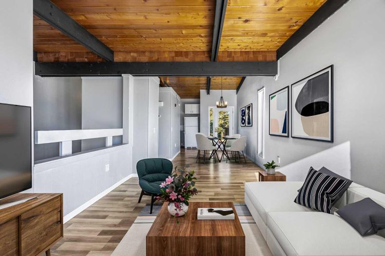 ** OPEN HOUSE SUNDAY DEC 14 ** 1:00 - 4:00PM** RENOVATED Bi-Level Townhome BACKING Onto a PARK with Exposed Wood Beams & LOW Condo Fees!! Welcome to this warm and inviting bi-level townhome, perfectly tucked away in one of the MOST DESIRABLE locations in the complex — backing directly onto a beautiful park surrounded by mature trees. From the moment you walk in, you’ll be captivated by the SOARING VAULTED CEILINGS and exposed wood beams, adding timeless character and an undeniable sense of charm.The OPEN CONCEPT main floor is bright and airy, featuring a renovated kitchen with updated cabinetry, Tile backsplash, modern lighting & gorgeous wood counter tops! The spacious living and dining areas are ideal for entertaining or relaxing at home, filled with natural light that enhances the home’s cozy, welcoming atmosphere. Step outside to your private deck overlooking the park — the perfect place to enjoy quiet mornings or unwind after a long day. Completing the upper level is a beautifully renovated 4-piece bathroom finished with a beautiful modern vanity and tile shower! Downstairs, you’ll find 2 comfortable bedrooms with large windows, and a practical laundry and storage area. Important updates have already been completed, including a NEW furnace, NEW hot water on demand system, newer windows + a new back door, so you can simply move in and enjoy.This well-managed complex is known for its strong reserve fund and low condo fees, making it a fantastic opportunity for first-time buyers, downsizers, or investors alike. With easy access to schools, shopping, parks, transit, and major roadways, this location truly has it all.Come experience the perfect balance of character, comfort, and convenience — this MOVE IN READY gem is ready to welcome you home! IMMEDIATE POSSESSION AVAILABLE!! (id:26452)