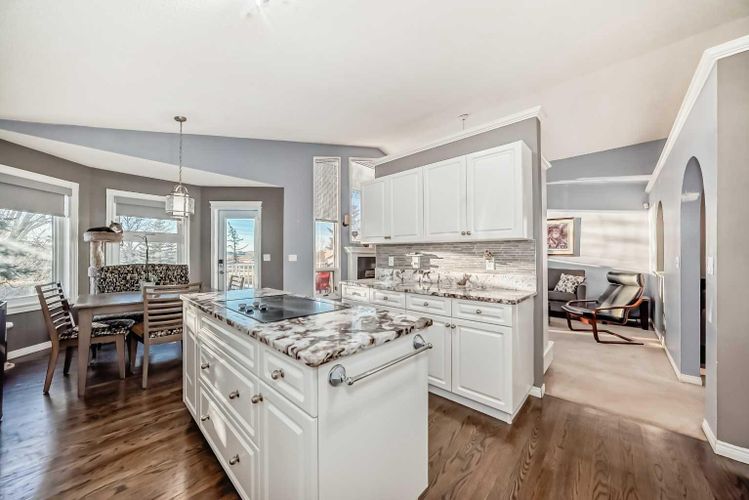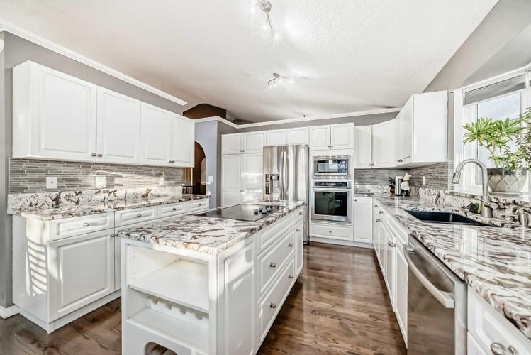 Welcome to 256 Lakeside Greens Drive! SIGNIFICANT PRICE IMPROVEMENT! NOW OFFERED AT ALMOST $80,000 BELOW THE ORIGINAL LIST PRICE! MOTIVATED SELLER! THIS HOME PRESENTS EXCEPTIONAL VALUE IN TODAY'S MARKET! IMMEDIATE POSSESSION IS POSSIBLE! GOLF COURSE LIVING WITH SUNSET VIEWS AND NO NEIGHBORS BEHIND!! Nestled in the prestigious Lakeside Greens Golf Course community of Chestermere and just steps to the Clubhouse, this beautiful bungalow offers a total of four bedrooms, three baths with OVER 3000 sq ft of living space! Enjoy a sunny west-facing backyard that backs directly onto the fourth hole, the perfect spot to enjoy breathtaking sunsets and mountain views. Inside, the main floor features a welcoming living and dining room combination, ideal for entertaining. The large chef's dream kitchen boasts an island with granite countertops and stainless steel appliances, along with a built in oven and microwave! Relax in the cozy family room with gas fireplace and from the kitchen nook area, step out to the large deck and enjoy the serene golf course setting. There are two spacious bedrooms on the main floor. The primary bedroom will fit your king bed and the ensuite features a separate shower and tub plus there is a large walk in closet! The second bedroom is generous in size, perfect for guests or family as it comes complete with a 'Murphy' Bed. There is a full bath and convenient main floor laundry. The spacious fully developed walk-out basement includes an illegal suite (constructed less than five years ago), ideal for extended family or guests. It features a fully upgraded kitchen with a large island, ideal for meal prep and casual dining! This level also includes two well sized bedrooms, a full bathroom, a large rec room and a second cozy gas fireplace, creating a warm and inviting atmosphere!There is an energy efficient 'On Demand' Hot water system, and the majority of the windows have been replaced within the last few years. LIFE LONG 'UNICRETE' concrete roof tiles! T he garage is OVERSIZED, measuring 24'.5" x 24'3" and from the garage, there is a SEPARATE entrance leading into the basement. This home combines comfort, elegance, and unbeatable views, all in a highly 'sought' after golf course location! DON'T MISS THE OPPORTUNITY TO OWN A BEAUTIFUL PROPERTY IN LAKESIDE GREENS! (id:26452)