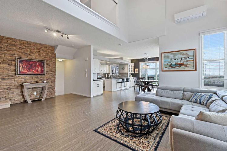 Discover luxury living in this one-of-a-kind executive end unit townhome in prestigious Christie Park, offering over 3,200 sq ft of refined living space and incredible views of the downtown skyline from all three levels. Nestled in a private, elevated location, this home combines upscale comfort with low-maintenance living—including a fully finished walk-out basement and thoughtful upgrades throughout. The sun-soaked main floor features soaring vaulted ceilings, expansive windows, and updated low-maintenance luxury vinyl plank flooring. The spacious living room, with a cozy gas fireplace and brand new air conditioning (Fujitsu Airstage Multi-Room Mini-Split System) flows effortlessly into the elegant dining area—complete with two built-in storage hutches and ample room for entertaining. The chef-inspired kitchen showcases granite countertops, stainless steel appliances, upgraded lighting, a full pantry, and generous cabinetry. Step into the main floor laundry room, or head into the heated, oversized double garage with epoxy flooring and built-in storage. Upstairs, wake up to panoramic city views from your private primary retreat, featuring vaulted ceilings, a walk-in closet, 5-piece ensuite, and its own dedicated air conditioning unit. The second bedroom includes a walk-in closet, ensuite bath, and a built-in Murphy bed—perfect for guests or home office flexibility. Prepare to be amazed... the walkout lower level boasts over 1,700 sq ft of versatile space!!! Host movie nights in the theatre room with projector screen, wine room, and space for games like shuffleboard. A third bedroom, full bath, and dedicated home office with a stylish feature wall add comfort and functionality. One of the standout features is the expansive flex space/art studio—surrounded by windows, with direct walkout access and breathtaking views. Own your own business? Host meetings, clients, coffee sessions as its an incredibly and creative flexible retreat. You'll also find a fully equipped home gym (easily converted to a 5th bedroom), wet bar, and abundant storage throughout. This home truly has it all—location, space, style, and those unbeatable downtown views. Book your private tour today. (id:26452)