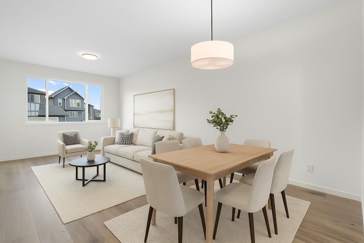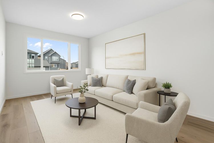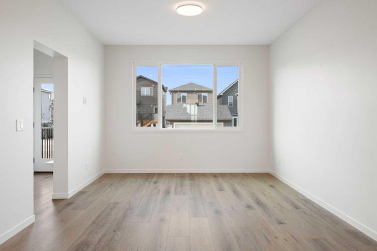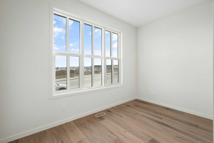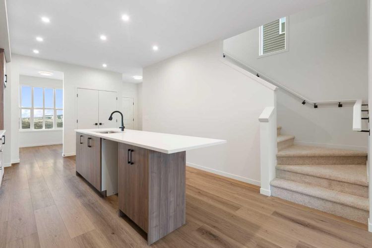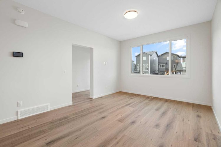 Welcome to Glacier Ridge where elevated design meets everyday comfort in this brand-new Cedarglen Homes semi-detached residence. This home is crafted for the rhythm of modern living - open, inviting, and effortlessly functional. Step inside and feel the flow immediately - a bright front foyer ushers you toward a sunlit flex room, ready to adapt to your lifestyle. Imagine a quiet home office for focused mornings or a cozy reading nook that soaks in the afternoon light. Beyond, the heart of the home unfolds - a stunning open-concept kitchen with a generous island, sleek quartz countertops, and rich walnut-style cabinetry that anchors the space in warmth and sophistication. Matte black finishes add a contemporary edge, while the seamless connection between kitchen, dining nook, and great room makes entertaining a joy. Whether it’s a lively dinner with friends or a relaxed Sunday breakfast, this is where moments naturally gather. Off the great room, the mudroom offers both practicality and charm - with a convenient half bath and access to the rear deck, perfect for summer BBQs or evening unwinds. Beyond the deck, you’ll find a parking pad ready for your future garage - and a side entrance to the unfinished basement, a rare opportunity to customize or add a secondary suite down the line (subject to city approval and permitting). Upstairs, the thoughtful design continues. A central bonus room offers a casual retreat - movie nights, game days, or a play space that keeps the energy upstairs. The primary suite sits privately at the back, complete with a walk-in closet and a serene 4-piece ensuite where you can recharge in peace. Two additional bedrooms share a stylish full bath, while the conveniently placed laundry room keeps chores close at hand. Every detail here feels intuitive - designed to simplify daily life without sacrificing beauty. And the finishing touches? Luxury vinyl plank flooring on the main, quartz countertops throughout, LVT in baths and laundry, and a $4, 096 appliance allowance for your fridge and stove selection - ensuring the final look reflects your style. The microwave, range hood, and dishwasher are already chosen for you, and you’ll receive a $1,000 landscaping rebate when you complete your outdoor oasis within a year of possession. This is more than a new home - it’s a fresh start in one of Calgary’s most exciting new communities. Glacier Ridge offers the perfect blend of modern architecture, community connection, and natural beauty - all waiting to be experienced. Make it yours and start building your next chapter in Glacier Ridge today. *Some photos are virtually staged.* (id:26452)