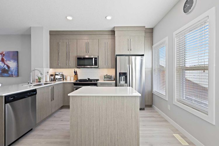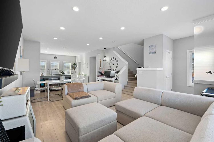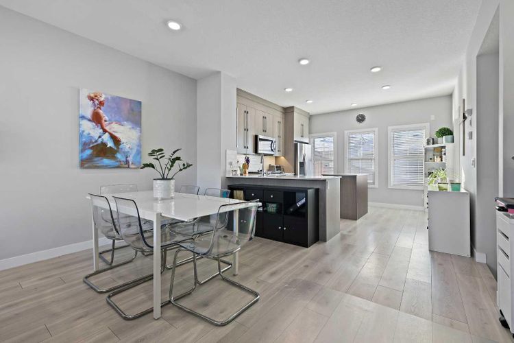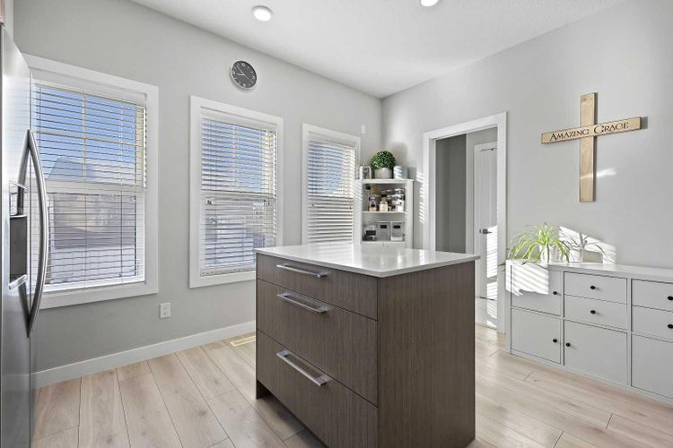 BEAUTIFUL OPEN FLOOR PLAN | EXTRA LARGE CORNER LOT | TONS OF NATURAL LIGHT ALL DAY!! This exquisite town house encompasses a modern palette with fabulous finishes and large living spaces perfectly suited for a family with children, empty nesters or a professional working from home! Situated on an EXTRA LARGE CORNER LOT, the back yard has room for a large family including a side yard for the pup's dog run, a large area for children to play...even a trampoline will fit easily here PLUS an area for DINING AND RELAXING AL FRESCO after a long work day! Let's step inside where a sizeable ENTRY WAY flows nicely into your main living area that features LARGE WINDOWS, HIGH CEILINGS and lots of room for furnishing in style! Enjoy cooking and entertaining in the well equipped kitchen boasting a GAS RANGE, WORKING ISLAND, AMPLE QUARTZ COUNTERS and STAINLESS STEEL APPLIANCES! Tall to the ceiling Thermofoil wood cabinets ( resist fading) with modern linear hardware add to the beauty of clean lines and ample storage capability while a CENTRAL OPEN DINING ROOM is the perfect hub for casual or formal dinners that easily seats 8-10 persons comfortably! The main floor gleams all day long in natural sunlight that beams through numerous windows front and back, easy to keep an eye on the kids playing in the fully fenced backyard while creating in the kitchen. The extra wide main level floor plan also allows for a SPACIOUS WORK AREA where business can be carried out in the privacy and comfort of your own home! The HALF BATH is conveniently tucked away for privacy. Upstairs is a comfortable and roomy place to unwind featuring a LUXURIOUS PRIMARY BEDROOM spacious enough for a king sized bed and side tables, beautiful large windows, sizeable walk in closet and fabulous 4 PIECE ENSUITE with DUAL VANITIES & HUGE GLASS & TILE SHOWER! The UPPER HALL LAUNDRY is convenient and serves as a great work area for folding and ironing...not just a tight closet housing a washer and dryer! Comp leting this floor are 2 ADDITIONAL LARGE BEDROOMS each encapsulated in natural sunlight and sizeable enough for bigger furniture! The 4 PIECE BATH is conveniently located right beside for easy preparation before bed and early mornings! The lower level basement is wide open for your creative development and offers ample space for any additional lifestyle elements. This beautiful home has so much to offer including WIDE PLANK LAMINATE FLOORS | NEWLY PAINTED THROUGHOUT | NEW ROOF ON HOUSE AND GARAGE (2025) | NEW SIDING (2025) | NEW EAVES TROUGHS (2025) | NEW GUTTERS (2025) | DOUBLE DETACHED GARAGE WITH BUILT-IN WORK BENCH! A PARK AND PLAYGROUND is just steps away for the kids to enjoy! Carrington offers a vast array of amenities just minutes from your door and major routes such as Stoney Trail and Deerfoot Trail are only minutes away for weekend escapes and a quick commute to downtown! Come take a look...HOME IS HERE! (id:26452)