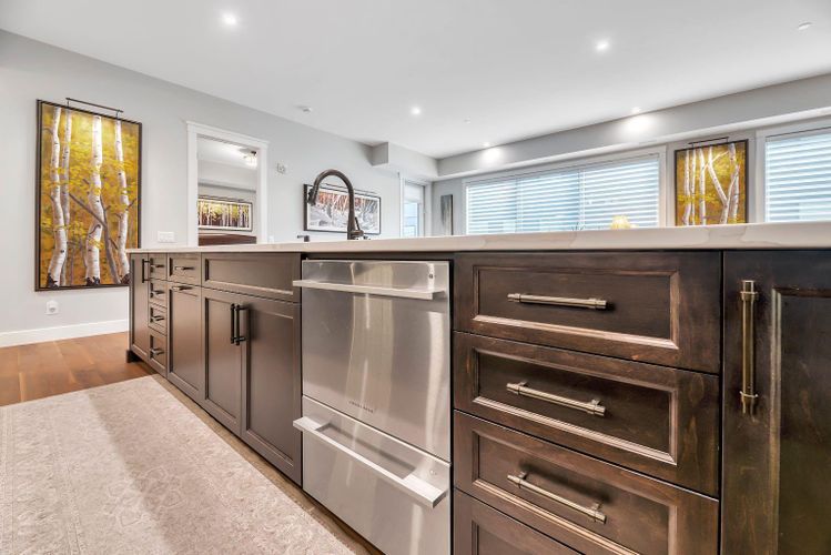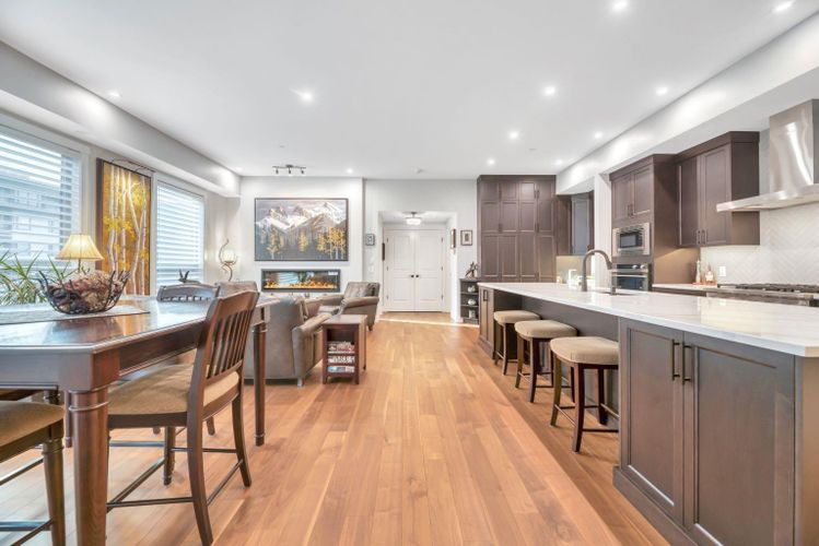 Welcome to Luxury Living in the Heart of University District and this exceptional 1230 sq ft, 2-bed, 2-bath executive condo in the coveted Capella Stacked Flats offering thoughtful design, upscale finishes, and incredible natural light from its Southern exposure. Step inside to an expansive open-concept layout where 10’ ceilings and large windows create an airy, elevated atmosphere. High end finishes include gorgeous engineered Walnut hardwood floors throughout, chef-inspired kitchen complete with an oversized island, upgraded cabinetry, premium Fisher & Paykel appliances, a custom built-in wall pantry, a dedicated tech center, undermount lighting for ambience and a tasteful Herringbone pattern backsplash. The spacious dining and living area makes it easy to host gatherings or enjoy a quiet night around the fireplace. This home has a sunny South facing balcony with a Phantom screen door and a gas line for a BBQ. There is also a water line on the patio to help keep your plants or flowers fed. The primary bedroom offers a custom walk-in closet, tray ceilings and spacious ensuite with dual sinks, a beautifully tiled shower with bench, cozy heated floors, and generous storage and counter space. The second bedroom doubles beautifully as a home office or guest suite with the other 3 pc bath directly across fitted with heated floors and another tiled shower. This space also houses the On demand Navien hot water tank and HRV with humidifier, neatly tucked away in its own storage closet. A rare luxury in condo living, this unit includes its own oversized, private heated garage—providing security, storage, and ease of entry. There is a handy workbench with cabinetry, windows along the side for natural lighting and epoxy floors as well as a convenient water line. Located in the vibrant University District, you are a short walking distance away from green spaces, cafes, restaurants, grocery store, business district with numerous medical offices, Market Mall, the Univers ity of Calgary, Alberta Children's Hospital and an array of urban conveniences. Designed with quality, sustainability, and lifestyle in mind, this LEED-certified building offers a boutique living experience with only eight units per building and just two neighbours on your floor. Each unit has its own heating, ventilation and air conditioning systems. Also included is a premium fitness center for residents use and lovely garden and patio areas throughout the complex. A true standout home in one of NW Calgary’s most desirable communities—your elevated lifestyle begins here. (id:26452)