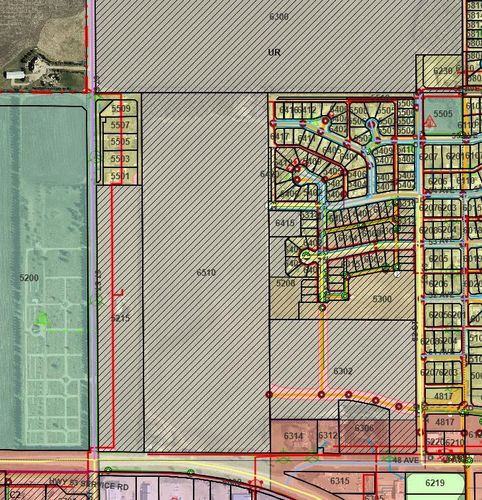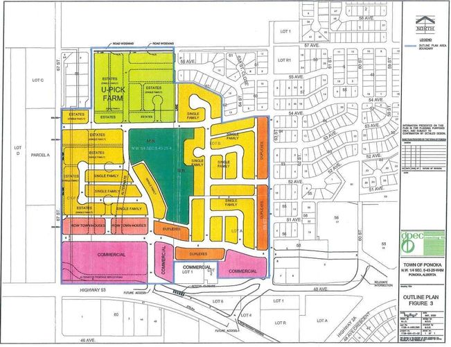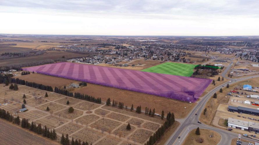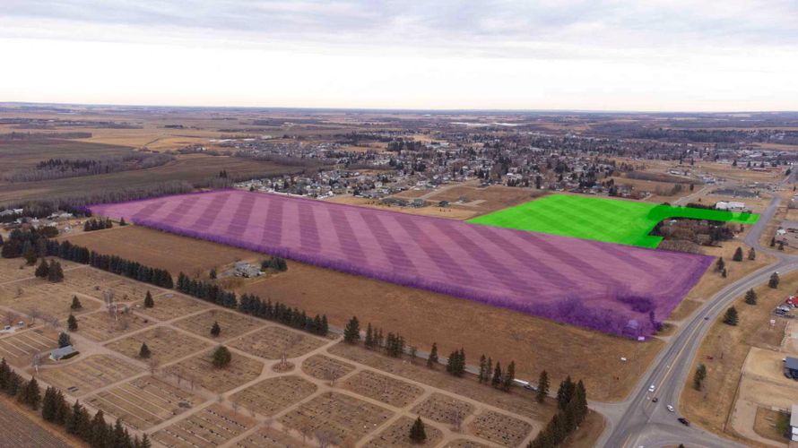 Prime Development Land spanning 70.70 acres with Area Structure Plans, offering a strategic opportunity for land development. The two parcels, 6510 Hwy 53 (Urban Reserve, 53.27 acres) and 6302 48 Avenue (C2 Commercial / Urban Reserve, 17.43 acres), are available for a large contiguous parcel, providing over 70 acres for a master-planned community in Ponoka or can be sold individually. The site features flat topography, excellent development flexibility for staged capital construction, and options for commercial, single-family, and multi-family residential projects. The NW5-43-25-W4 lands offer a short- to medium-term development opportunity in the Town of Ponoka, with existing services nearby, residential neighbourhoods in proximity, and strong frontage potential along key transportation routes. This parcel is uniquely positioned for a mixed-use concept combining commercial, medium-density residential, and single-family housing, with superb access and visibility along Highway 53 and underground services nearby. Explore the supplements for more detailed information on the ASP outline plans, including sanitary sewer and water main concepts, as well as grading and storm water management concepts. Seize this development opportunity now or hold it for the future! (id:26452)