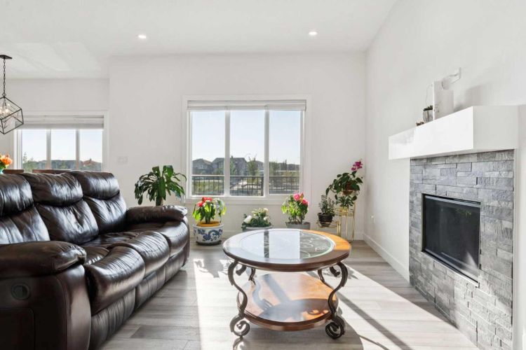 Welcome to your dream family home! This exquisite Walkout property, built on a premium Corner Lot in Midtown Airdrie, seamlessly blends modern luxury with practical living. Featuring 6 Bedrooms, 4.5 Bathrooms, and Two master suites, and total over 3300 sqft developed living area, it offers flexible living space perfect for any lifestyle. Each floor comes with 9-foot ceilings, offering a bright and spacious living environment. Step inside to discover a sun-filled open-concept layout with higher ceilings and oversized windows framing serene lake views. The main level offers a welcoming foyer, a spacious living and dining area, and a chef’s kitchen complete with built-in electric cooktop, built-in wall oven and microwave, full-height cabinets that extend to the ceiling, providing plenty of storage space, and a versatile SPICE Kitchen with an additional gas range —perfect for effortless cooking and gatherings.Upstairs, enjoy four generously sized bedrooms, including Two luxurious master suites. The primary retreat boasts stunning lake views, a walk-in closet, and a spa-like 5-pc ensuite with dual vanities and a freestanding tub. A second master bedroom faces the quiet green space and includes its own walk-in closet and ensuite bathroom. A bright bonus room overlooking the lake and a convenient laundry room complete this level.The fully finished walkout basement is an entertainer’s delight, featuring two additional bedrooms, a full bathroom, a stylish wet bar, and a second massive laundry room with extra storage—offering excellent potential for guests, teens, or rental income.Outside, the professionally landscaped backyard includes a custom garden, new concrete steps, a widened driveway, and a peaceful sunroom with motorized blinds. Enjoy summer days on your deck overlooking the pond, while kids play in the nearby playground.Recent upgrades include a new AC system (July 2025), new iron fencing, fresh concrete work, and more. Located moments from green spaces, la ke access, and a school bus stop directly across the street, this home combines luxury, location, and lifestyle like no other.Don’t miss the chance to make this extraordinary property your own! (id:26452)