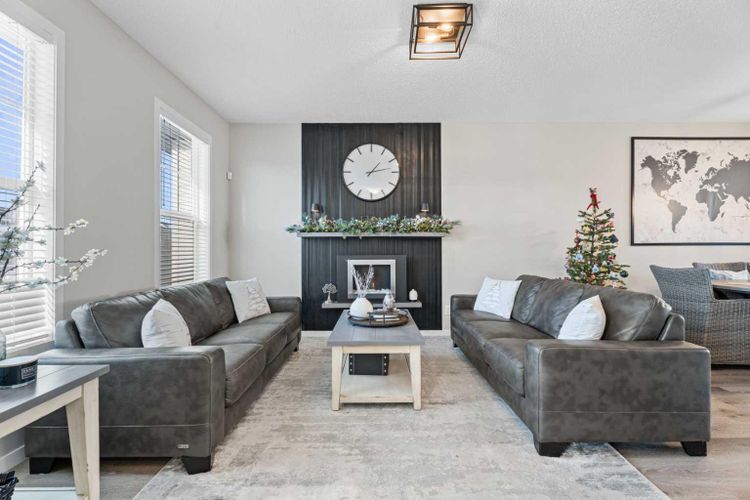 This home truly has it all, offering over 2,200 sq. ft. of beautifully developed living space. Step inside to a bright, open layout that instantly feels welcoming. Wide vinyl plank flooring runs underfoot, drawing your eye to the bio flame fireplace framed by a stylish mantle and slat-wall feature that anchors the room and sets a warm, modern tone for the rest of the house. From the living room, the layout flows naturally into the dining area, perfectly positioned for both everyday meals and weekend gatherings. Just off to the side, a thoughtful main-floor office nook offers a dedicated spot for working from home, kids’ homework, or managing the household calendar. Beyond the dining area, the kitchen feels both polished and practical. Two-tone cabinetry pairs with stainless steel appliances, quartz countertops, and a herringbone tile backsplash for a designer aesthetic, while the centre island with breakfast bar seating keeps everyone connected. A functional mudroom at the back entry, complete with a built-in seat and hooks, keeps coats, boots, and backpacks organized, making daily comings and goings a little more effortless. Upstairs, in the primary bedroom, a calm retreat with a stylish ensuite and a large walk-in closet. It’s thoughtfully set apart from the two additional bedrooms, giving everyone a bit of extra privacy. The secondary bedrooms are generous in size and ready to adapt as kids’ rooms, guest space, or a second home office. Descend to the lower level to discover a cozy rec room that’s ideal for movie marathons or game nights, a wet bar to set up for snacks, and a dedicated gym space so you can skip the commute to the fitness centre and work out at home instead. Outside, the backyard offers a composite deck on a steel frame, perfect for BBQs, as well as zero maintenance landscaping, a vinyl fence for privacy and leads to an exceptional 22’ x 20’ detached double garage with 10’ ceilings, insulation and drywall, attic trusses with an access hatch and lad der for extra storage, a 16’ x 8’ garage door, 60A electrical service with EV charging, a 4 kW fan heater, and a side mount garage door opener, it’s perfectly set up for cars, or hobbies. All of this is tucked into Dawson’s Landing in Chestermere, a vibrant, family-focused community where life meets nature. Here you’re moments from nearly 30 acres of planned protected wetlands and a 22-acre environmental reserve with scenic trails and a unique EcoPark, plus year-round recreation at nearby Chestermere Lake for swimming, boating, skating, and lakeside walks. With convenient access to schools, parks, shopping, and an easy commute into Calgary, this property offers a polished home in a community designed for everyday living and weekend play. Sellers are downsizing and some items may be negotiable. (id:26452)