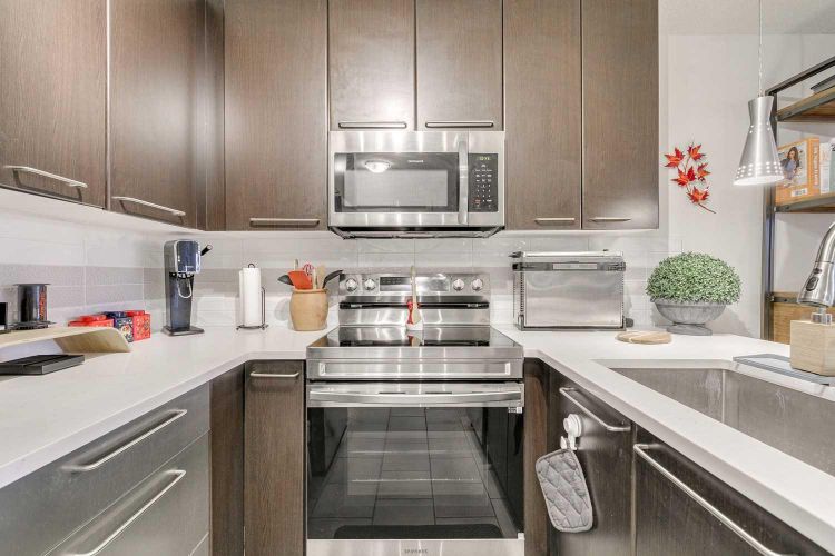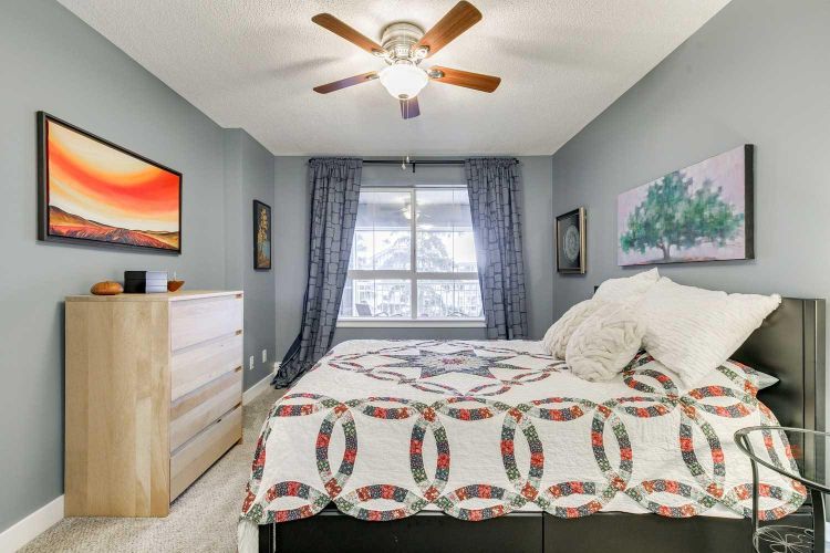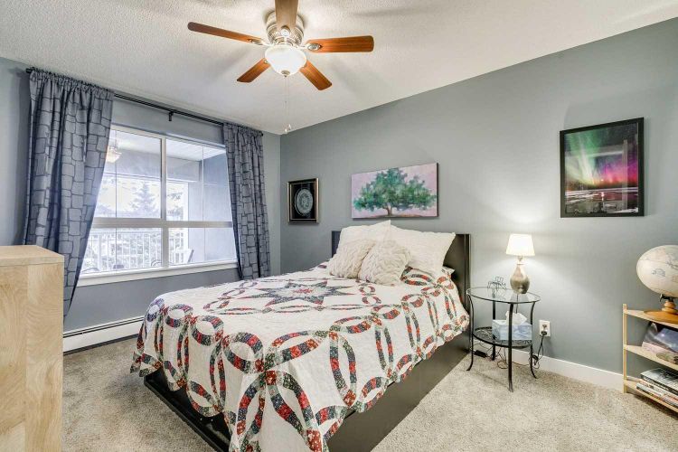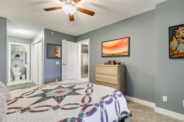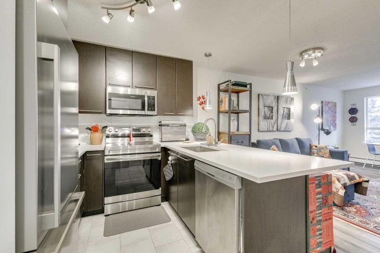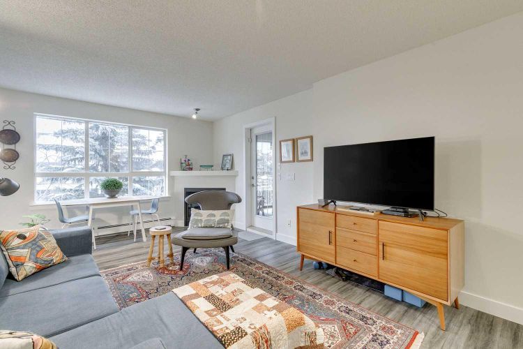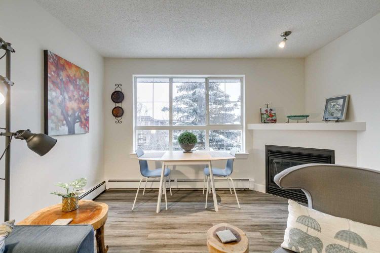 Tranquil top floor unit facing mature trees will help all your dreams come true in this 1-bedroom residence, ideally positioned in the heart of Lincoln Park, just steps from Mount Royal University & amenities. Whether you’re a discerning student, faculty member, or strategic investor, this sanctuary offers an unmatched lifestyle & opportunity.Thoughtfully updated, the home features a super functional kitchen with new fridge, stove, washer & dryer. Culinary enthusiasts will appreciate the gourmet kitchen, boasting cabinetry to the ceiling, and an impressive 8-foot quartz breakfast bar. Step outside onto the private 10' x 8' covered patio, an idyllic setting for your morning coffee or evening grilling with convenient gas BBQ hookup.Open-concept layout is both functional and inviting, enhanced by a dedicated den/office that truly has enough space to use for function. A charming corner gas fireplace anchors the living space, complemented by luxury vinyl plank flooring for a contemporary finish. The bedroom is a serene retreat, complete with plush carpeting, a ceiling fan, a generous double walk-in closet, and access to the beautifully updated 4-piece cheater ensuite with new tower shelf, curved shower rod, and a quartz vanity with elevated fixtures.Titled underground parking stall accompanies the unit—an invaluable feature in this sought-after building. You can also offer your guests underground visitor parking for their convenience.Residents of this impeccably maintained, pet-friendly building enjoy premium amenities, including a fully equipped fitness centre, a party room, and two guest suites for company so they can visit in comfort. Additional perks include secure storage locker, multiple bike storage rooms, and TELUS PureFibre connectivity for seamless, high-speed internet throughout.More than just a home, this exceptional property offers a refined, turnkey lifestyle in one of Calgary’s most desirable southwest communities. (id:26452)