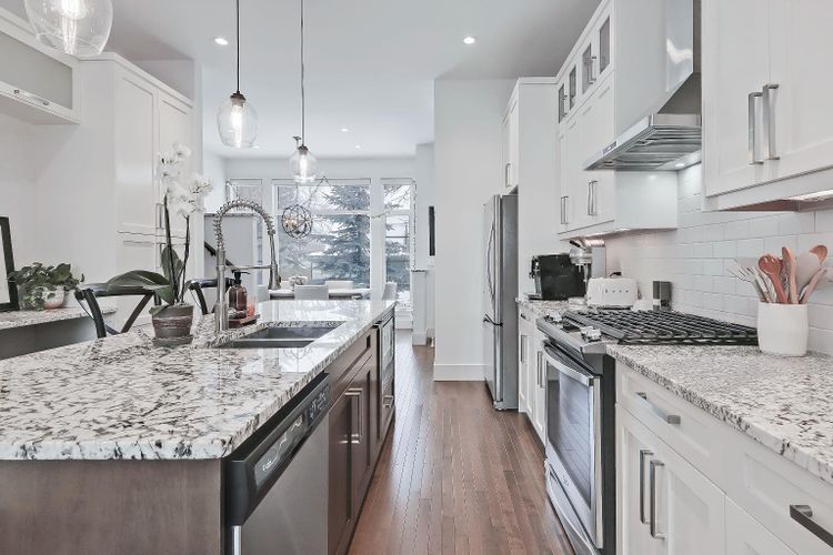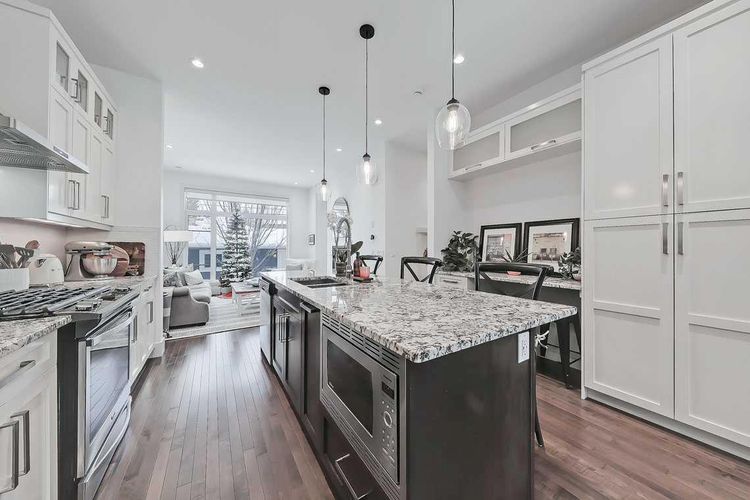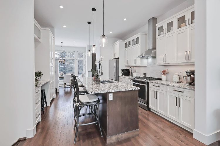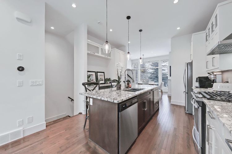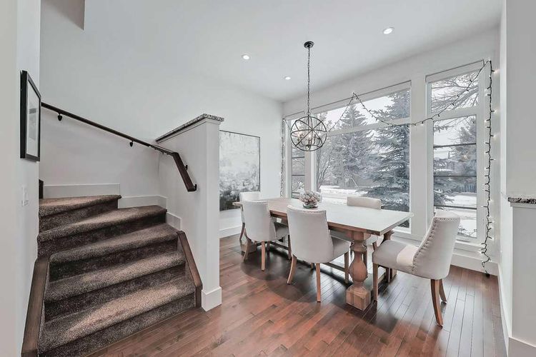 This semi-detached home in Renfrew delivers a bright, modern lifestyle in one of Calgary’s most walkable inner city communities. With 4 bedrooms, 3.5 bathrooms, and a thoughtfully updated interior, it offers the kind of everyday comfort and design-forward details that make it feel instantly welcoming. The main floor opens with 10 ft ceilings, warm hardwood, and big windows that carry natural light from front to back. A true dining room anchors the front of the home—bright, inviting, and perfectly sized for hosting—while still feeling connected to the main living space. The gourmet kitchen is the heart of the main level, built with GRANITE COUNTERS, CUSTOM CABINETRY, STAINLESS STEEL APPLIANCES, and a large island that works for prepping, gathering, or weeknight meals. The layout keeps everything flowing smoothly toward the living area, where generous seating space makes it easy to settle in, anchored by a cozy GAS FIREPLACE—perfect for chilly evenings. At the back of the home, a functional mudroom includes a good-sized closet to keep shoes, coats, and everyday gear neatly organized. Upstairs, the PRIMARY SUITE feels elevated and calm with its 11 ft ceiling and RENOVATED ENSUITE. The ensuite features DUAL VANITY, updated finishes, and a large glass shower that adds a spa-like feel. Two additional bedrooms share a full bathroom, and UPPER LAUNDRY keeps daily routines simple and efficient. The fully developed basement adds valuable extra living space. A spacious family room offers flexibility for movie nights, play space, or a home gym, and the BUILT-IN WORKSTATION makes work-from-home days easier. A full bathroom and a fourth bedroom with a WALK-IN CLOSET complete the level, creating a comfortable setup for guests or older kids. Outside, the PROFESSIONALLY LANDSCAPED BACKYARD is ready for relaxing, gardening, or outdoor entertaining, featuring a new deck and sunny SOUTH exposure that fills the space with warmth and natural light—ideal for lounging in the sun, firing up the BBQ, and hosting friends and family. A DOUBLE DETACHED GARAGE adds everyday ease with secure parking year-round, plus plenty of extra room for bikes, seasonal gear, tools, and storage. Set in a quiet pocket of Renfrew, this home gives you fast access to parks, pathways, schools, and neighbourhood favourites. You’re close to the Renfrew Aquatic Centre, the community sports fields, and the shops and restaurants in both Renfrew and Bridgeland. Quick downtown access and nearby transit make commuting easy, while the area’s strong community feel and walkability add to the day-to-day experience. Altogether, this property stands out as a well-finished, thoughtfully updated inner city home with strong lifestyle value. See it for yourself today! (id:26452)