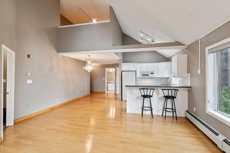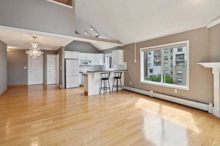 Exceptional value for this spectacular Top-Floor Penthouse in the Pavilions of Eau Claire with unparalleled prime northwest corner location! Outstanding condominium home with 2 UNDERGROUND TITLED PARKING STALLS, air conditioning, loft, soaring-high cathedral ceilings, many large bright corner windows, plenty of natural light and thoughtfully designed open-concept layout that seamlessly connects the kitchen, dining and living areas making it perfect for entertaining or home relaxation! Beautifully appointed and upgraded condo with hardwood & tile floors, granite counter-tops throughout, custom privatized Hunter-Douglas blinds with black-out features and both bathrooms have been completely renovated. Large northwest corner balcony with BBQ gas-line, brand new air conditioning unit, partial views of Peace Bridge and handy secure storage room. Spacious primary bedroom has large bay window, 3 pce ensuite bathroom with rain shower, walk-in closet and guest bedroom is conveniently located next to 4 pce main bathroom. Enjoy the corner gas fireplace and large versatile loft overlooking the living area that can be used as a family or recreation room! Comes with large separate laundry room with storage, European washer/dryer combo, under-stairs storage and choice parking stalls #80, #134(with storage cage) both conveniently located next to the elevator! This special home boasts the largest floor plan, finest location and best parking stalls in the building!! The ever popular Pavilions of Eau Claire offers a secure entrance lobby with seating area, main floor party/billiard room, secure underground titled parking & bike storage and visitor parking on the south side of the building. Exceptional heart of Eau Claire location nestled along the south bank of the Bow River, close to the world-class pathway system, beautiful Prince's Island Park and walking paths, close to great restaurants and fine dining, Buchanan's chop house & whisky bar is across the street, half-block to the ou tstanding Alforno bakery & cafe and just a short walk to Light Rail Transit and transportation, Peace Bridge, Kensington shops, Safeway and Calgary's vibrant city center. Enjoy downtown urban living at it's finest! (id:26452)