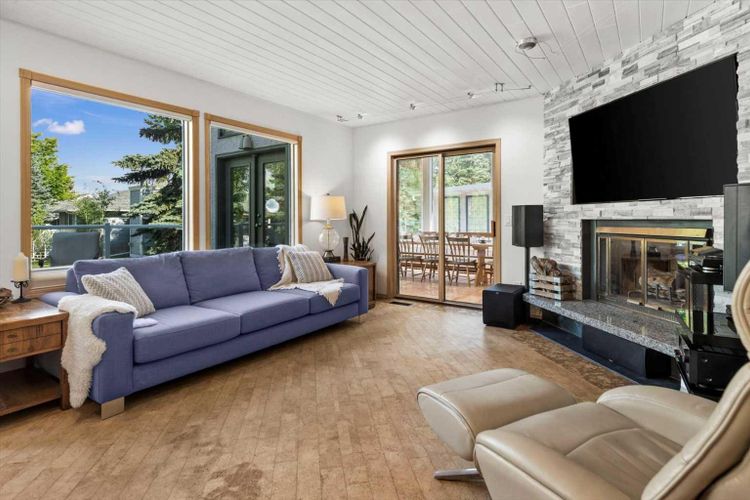This distinctive Bellamy Homes residence in the prestigious Uplands of Hawkwood blends thoughtful functionality and quality craftsmanship to create a unique family haven with generous gathering areas and quiet private retreats across 3,350 square feet of living space. The main floor encourages comfort and conversation. A loft style living room with soaring vaulted ceilings and a two sided fireplace opens on to a bright sun room designed to host large family gatherings. Cooking is a joy in your upgraded kitchen with a large quartz island, custom cabinetry, a Sub Zero refrigerator, a six burner Fulgor gas cooktop with hood fan, Fulgor double wall ovens with warming drawer, Bosch dishwasher, wine fridge, and a custom stainless steel sink with drainboard. Extend your living space outdoors on the new back deck with barbecue hook-up and a Roman paver patio, perfect for al fresco dining and quiet relaxation. A well placed office is ideal for work from home, while a convenient powder room, practical laundry and mud room with direct access from the attached double garage, are ideal for families on the go.Upstairs, the primary retreat offers a serene escape with a relaxing ensuite featuring dual sinks, a deep soaking tub, a full sized shower, and a walk in closet with custom storage. Three additional bright bedrooms and a family style washroom support a growing household. Large gatherings unfold in the lower recreation level, a hub designed for play and connection. The spacious recreation room with wet bar is perfect for movie nights, game day parties, and family celebrations. This level also includes a versatile flex room ideal for a home gym, playroom, or second home office, a fifth bedroom perfect for teens or guests, a full washroom, and ample storage. During summer garden parties or cozy winter evenings by the fire, the fully landscaped back yard with perennial gardens and mature trees frame everyday living and special occasions with grace and beauty, offering sp aces for cooking, dining and conversation, as well as a place for children and furry friends to play.Home updates include durable elastomeric coated stucco, hail resistant rubber slate roofing, new carpet and paint, renovated washroom, new hot water tank, new furnace, new washer and dryer and commercial grade sunroom windows. Residents of The Uplands enjoy exclusive access to The Uplands Recreation Centre, offering a party room with kitchen, exercise room, pool, hot tub and sauna, convertible court for squash or racquetball, tennis and pickleball courts. Families will appreciate the proximity to Hawkwood Elementary School, Hillside Park, scenic ravine pathways, and the nearby shops and amenities of Crowfoot Crossing. Properties in this quiet and cherished enclave are seldom available, presenting a rare opportunity to embrace a home crafted for meaningful celebrations, quiet moments, and every chapter of family life in between. (id:26452)