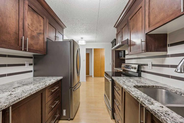 Welcome to this beautifully updated 5th-floor residence in a solid concrete building, ideally located in the highly desirable community of Dalhousie. Offering 869 sq ft of thoughtfully designed living space, this 2-bedroom, 1-bath condo features a spacious, functional layout highlighted by new carpeting and elegant granite countertops throughout. Enjoy peaceful views of the park right from your unit, adding a serene backdrop to everyday living.The expansive kitchen is finished with rich maple cabinetry, stainless steel appliances, and a convenient built-in pantry, seamlessly connecting to the generous living area. From here, step out onto the oversized 20' x 7' balcony, an ideal space for relaxing or entertaining. Abundant in-suite storage further enhances daily comfort and functionality.The building offers an impressive lineup of amenities, including a well-equipped fitness centre with dry sauna, a dedicated party room, games room, library, community garden, secured bicycle storage, underground heated parking, outdoor RV parking and storage available for rent, plus ample visitor stalls in the front of the building. A tennis court located along the side of the building adds even more recreational appeal. A common laundry area is also available for resident convenience.The location is truly hard to beat. The property backs directly onto CO-OP and Canadian Tire, with Northland Mall just across the street offering an excellent mix of retail, dining, and everyday services. A short 15-minute walk takes you to the Dalhousie LRT station, surrounded by Safeway, Starbucks, Earls, and a wide variety of dining options. This central setting makes the property ideal for students, healthcare professionals, and investors alike, with quick access to the University District, University of Calgary, Foothills Hospital, and Alberta Children’s Hospital.For those who enjoy an active lifestyle, nearby amenities include extensive bike paths, Nose Hill Park, Dalton Park, and the Sil ver Springs Golf and Country Club. Commuters will appreciate the quick access to Shaganappi Trail, Crowchild Trail, Sarcee Trail, and John Laurie Boulevard, all just minutes away.Condo fees truly cover everything, including electricity, heat, water, sewer, insurance, professional management, landscaping and snow removal, reserve fund contributions, and one underground, heated parking stall (#152). With its unbeatable location and comprehensive amenities, this property also presents an excellent investment opportunity with strong rental potential. (id:26452)