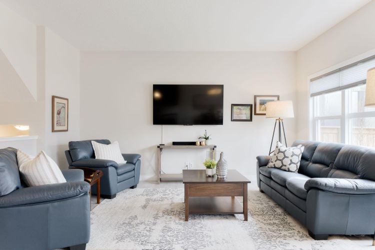 WELCOME & MAIN FLOOR• Beautifully designed home located in the Semi-Estate Community of Riviera• Inviting open-concept floor plan connecting the kitchen, living room & breakfast nook• Ideal layout for entertaining and family gatherings• Bright, spacious, and thoughtfully designed throughout .KITCHEN• Stunning kitchen with elegant quartz countertops• Stainless steel appliance package• Glass-top convection range• Large kitchen island with flush breakfast bar• Excellent space for casual dining and meal preparation• Functional and stylish heart of the homeUPPER LEVEL• Versatile bonus room — perfect for a home office, playroom, or media space• Convenient upper-floor laundry room with counter space and cupboards• Three generous bedroomsPRIMARY BEDROOM & ENSUITE• Spacious and luxurious primary retreat• 5-piece ensuite featuring: – Dual vanity – Soaker tub – Standalone shower• Large walk-in closet offering excellent storageBASEMENT• Unfinished sunshine basement with large windows• Bright and airy feel• Rough-ins for a 3-piece bathroom• Excellent opportunity to customize and create your ideal lower-level spaceOUTDOOR LIVING• West-facing deck — perfect for summer BBQs and relaxing evenings• Private backyard settingCOMMUNITY FEATURES – RIVIERA• Located along the Bow River and Environmental Reserve• Surrounded by mature trees and scenic landscapes• Walking distance to the river and pathway system• Quick bike ride to: – Cochrane Farmers Market – Spray Park – Cochrane Recreation Centre• Combines convenience with a serene, nature-focused lifestyle (id:26452)