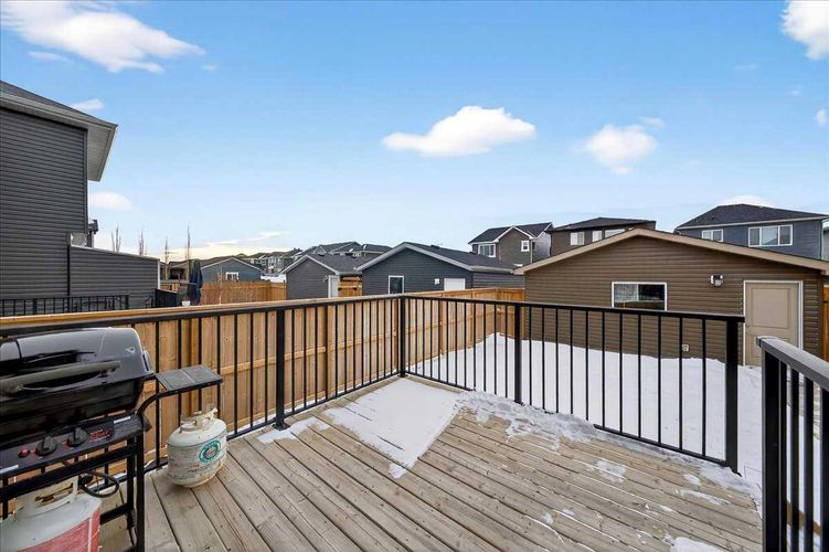 OPPORTUNITY CALLS - EVERYTHING YOU NEED IN THE DESIRABLE COMMUNITY OF EVANSTON - This amazingly cared for home is ready for you the moment you step inside — settled, comfortable, and confidently put together by owners who’ve treated it well from day one.The bright and open main floor sets the tone right away. Light moves easily through the home, surfaces are clear, and the details do their work in the background. Simple window coverings keep things crisp, while box valances on the main level add a layer of warmth and finish — a small design choice that makes the space feel complete. The kitchen, dining, and living areas flow naturally, giving everyday life room to breathe and gatherings space to unfold without effort. The open concept gives you everything you need at your fingertips. Upstairs, a large and spacious PRIMARY BEDROOM WITH A DEDICATED, OVERSIZED ENSUITE, two secondary bedrooms, and laundry placed where it actually gets used. The ensuite itself is finished with QUARTZ COUNTERTOPS, a GLASS SHOWER, and a DUAL VANITY — UPGRADED, practical, and done right.Outdoor living extends the home in both directions. The east-facing, FULL-WIDTH FRONT PORCH catches the morning sun and sets a welcoming first impression, while the WEST-FACING BACKYARD takes over later in the day. Fully fenced and sodded, with a rear deck, concrete hot tub pad and a DOUBLE DETACHED GARAGE WITH ADDITIONAL home access from the alley. This is a yard that works hard without asking much back — space for kids, casual BBQs, or evenings that stretch a little longer.The location quietly does a lot for daily life. ONE BLOCK AWAY, GREENSPACE WITH WALKING PATHS and a playground becomes part of routine, not a planned outing. Schools are close enough for real independence as kids grow, and pathways thread through the community, connecting to LARGER GREEN AREAS with lookout points, naturalized sections, and room to roam. Shops, services, and everyday conveniences are minutes away, and STONEY TRAI L IS CLOSE AT HAND — easy access without living in its shadow.CLEAN, COMPOSED, AND CLEARLY WELL CARED FOR. The next step isn’t overthinking it — it’s seeing it. Schedule a showing and let the house speak for itself. (id:26452)