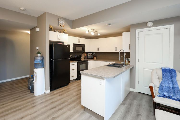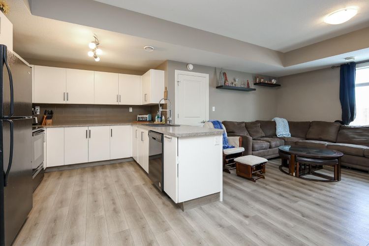 2 BEDROOM, 2 BATHROOM MAIN FLOOR CONDO ~ WEST FACING ~ LOW MAINTENANCE LIVING ~ Covered front entry and patio area welcome you to this move in ready home ~ Spacious foyer with a large coat closet opens to the open concept main living space with large west facing window and vinyl plank flooring ~ The u-shaped kitchen offers a functional layout and features ample cabinet and counter space, including an eating bar, full tile backsplash, and black appliances ~ easily host gathering in the dining room ~ Just off the kitchen is a storage/flex room ~ The primary bedroom can easily accommodate a king size bed plus multiple pieces of furniture, has a walk in closet with built in organizers, and a 4 piece ensuite ~ Second bedroom is also a generous size with ample closet space ~ Conveniently located laundry is next to the 4 piece main bathroom ~ Low monthly condo fees are $365.54 and include; exterior insurance, maintenance grounds, parking, professional management, reserve fund contributions, sewer, snow removal, trash and water ~ 2 Powered parking stalls right in front of the main level door offer easy access ~ Located just minutes south of Red Deer and Gasoline Alley (Walmart, Costco, Farmer's Market & tons more shopping and amenities), close to Penhold (schools with bus service, shopping), with quick access to highway 2 ~ This community offers beautiful walking trails through natural wetlands, along with numerous parks and playgrounds ~ Enjoy the serenity of a country setting while maintaining every day convenience. (id:26452)