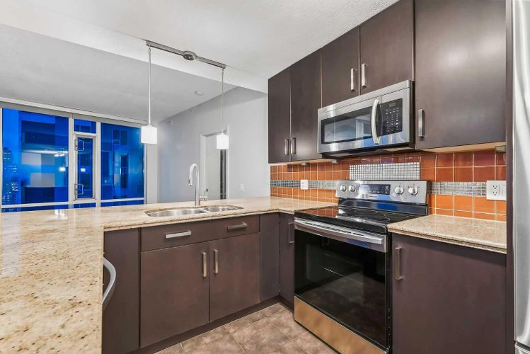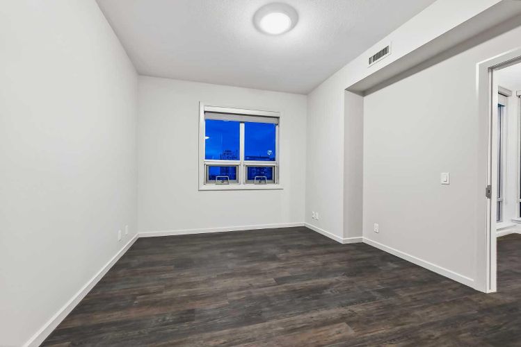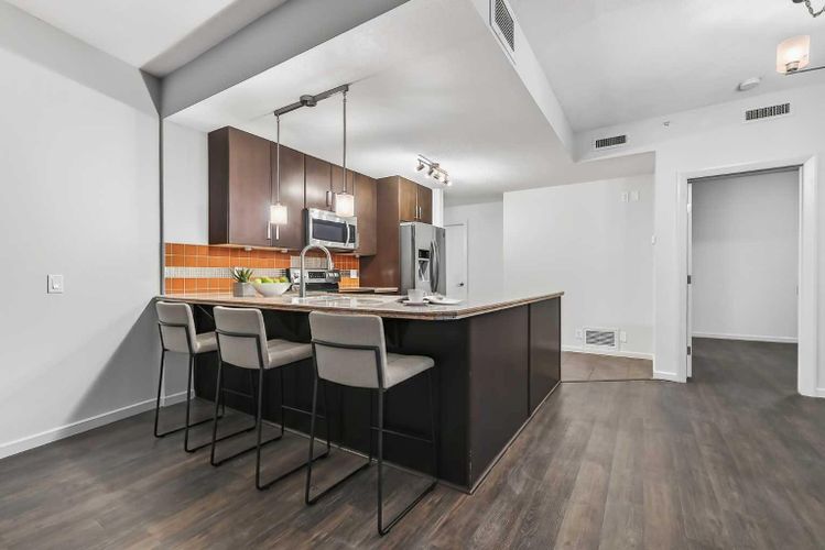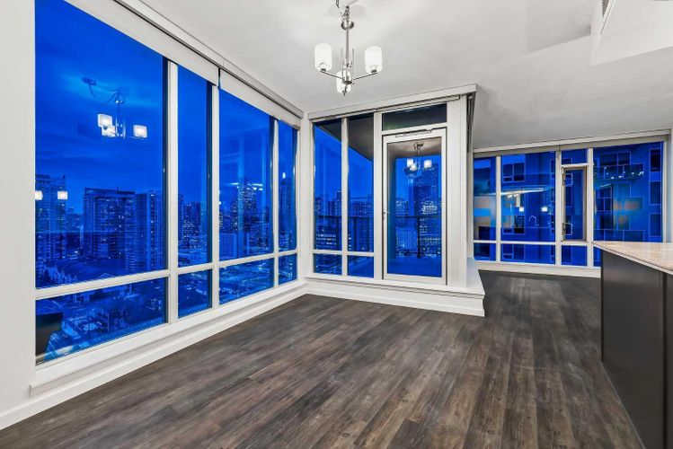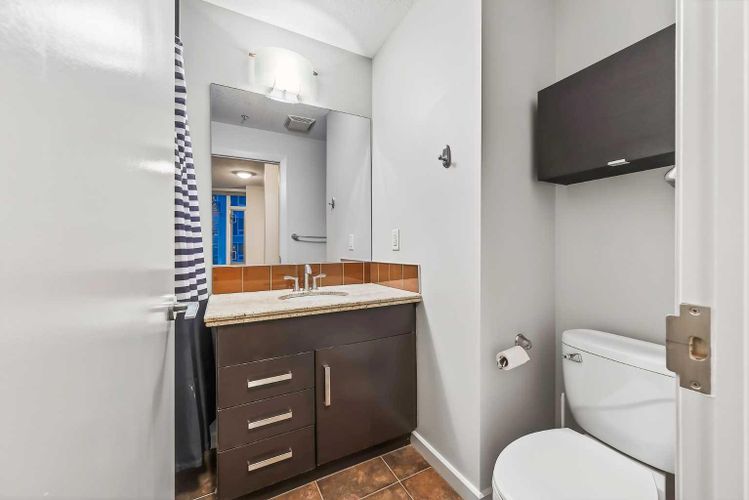Exceptional 16th-Floor Unit with Breathtaking Panoramic Views! This beautifully appointed unit on the 16th floor offers stunning, uninterrupted views of both the mountains and downtown skyline. Ideally situated within close proximity to the LRT and the MNP Community & Sport Centre, this residence combines convenience with luxury. The upgraded interior features high-quality finishes, including maple cabinetry, granite countertops, stainless steel appliances, luxury vinyl flooring, tile, and floor-to-ceiling windows that maximize natural light and panoramic vistas. The entryway includes a walk-in coat closet with custom built-in storage for added organization. A dedicated home office area is integrated into the layout, complete with a granite work surface. The in-suite laundry room offers additional storage space for everyday practicality. The generously sized second bedroom enjoys remarkable views and includes a walk-in closet with a convenient cheater door leading to a well-appointed bathroom featuring a large walk-in shower. The kitchen, with its modern design, opens seamlessly to the dining and living areas, creating an ideal space for entertaining. The private balcony extends the living space outdoors, offering an excellent setting for barbecuing or simply taking in the spectacular scenery. The comfortable living room provides an inviting atmosphere for relaxation and social gatherings. The primary bedroom is a peaceful retreat, showcasing expansive views and a walk-through closet that leads to a luxurious four-piece ensuite bathroom. Residents also enjoy access to a well-equipped amenity center, which includes an exercise room, hot tub, sauna-equipped dressing rooms, a gathering space with pool table, theater room and patio access, one being the rooftop! Additional features include assigned storage and one titled parking stall. Located just a couple of blocks from the Stampede Grounds and the C-train station, this prime location offers easy access to downtown am enities, dining, entertainment, and much more. This building is 18+ and no dogs are allowed. Book your showing and come on Buy! (id:26452)