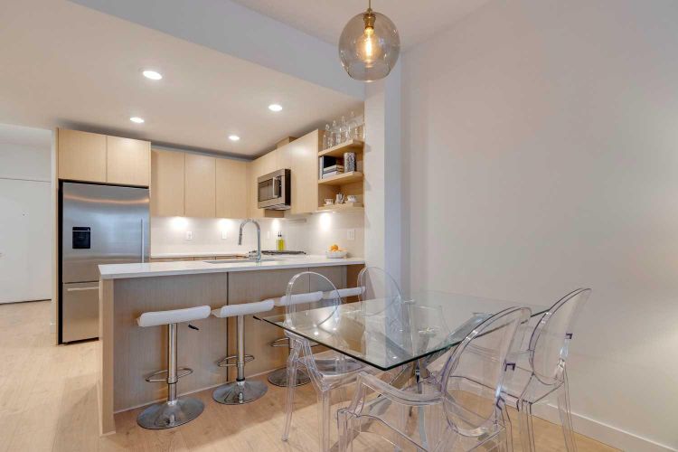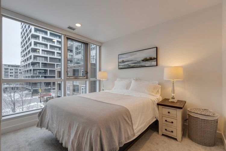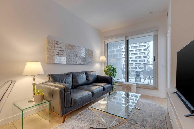Welcome to this premium inner-city condo offering a thoughtfully designed two-bedroom layout ideal for modern urban living. A light colour palette and engineered hardwood flooring create a bright and inviting feel throughout. The kitchen is beautifully finished with quartz countertops, premium Bosch appliances, and a gas range, combining style with everyday practicality. South-facing windows flood the home with natural light throughout the day, enhancing the open and airy feel of the space. The primary bedroom includes a private ensuite bathroom, and features smart storage solutions, with discreet cabinetry above the bathroom mirror. The functional second bedroom features a built-in Murphy bed, allowing the space to easily transition between a comfortable guest room and a dedicated home office. A standout feature is the large storage room and laundry area, a rare offering in condo living that provides exceptional functionality and organization. Residents of this building enjoy concierge service along with an impressive selection of amenities, including two fully equipped gyms, a dedicated spin room, and a yoga studio. The rooftop patio offers outstanding views of downtown, comfortable seating area and vegetable boxes. Additional conveniences include a car wash, secure bike storage, and a dog wash, all designed to enhance everyday condo living. Freshly painted and impeccably maintained, this condo is located in a well-appointed building that delivers quality construction and an exceptional inner-city lifestyle with easy access to dining, shopping, and transit. Make Bridgeland your home today. (id:26452)