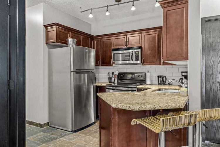 This 2-bedroom, 2-bath condo offers an efficient 692 sq. ft. layout and stunning mountain views of the iconic Three Sisters. Located in the desirable Grande Resort, you’ll love the easy walk to downtown shops, the river, and an extensive network of biking and walking trails. After a day of adventure, unwind in the indoor/outdoor hot tub, enjoy the indoor pool with waterslide, or let the little ones splash in the kiddie pool. On-site amenities, including a restaurant, spa, and fitness room create a complete resort experience, perfect for owners and guests to rest and recharge. The cozy living space features a gas fireplace for relaxing evenings and a covered deck where you can take in unforgettable mountain sunsets. A rare opportunity, this unit shares a common foyer with its adjoining 1-bedroom neighbor (also available), allowing the potential to combine both into a 3-bedroom, 3-bath configuration. Zoned as a Tourist Home, the condo offers exceptional flexibility for short-term or long-term rentals, making it an ideal mountain retreat and investment. (id:26452)