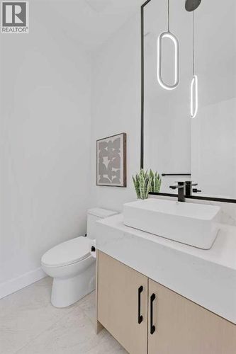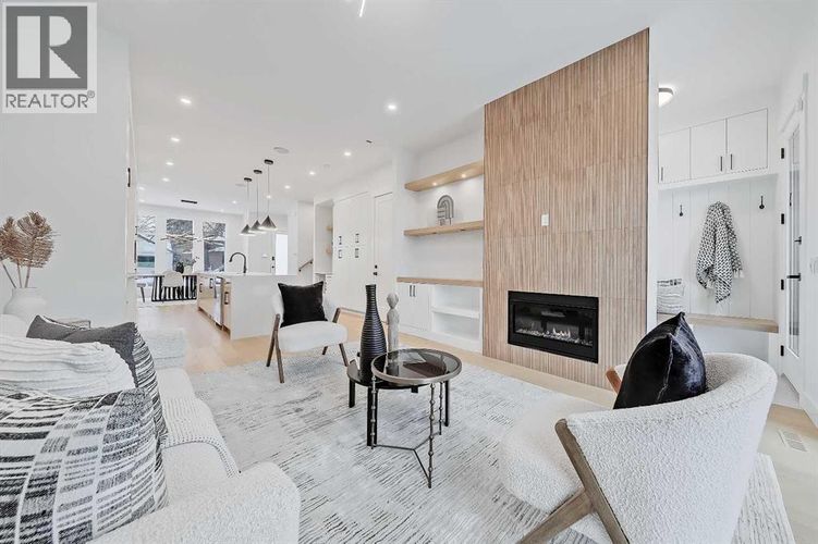 Step inside this modern semi-detached inner-city gem in sought-after RENFREW and discover a layout designed for both comfort and connection! With thoughtful upgrades and a smart, spacious flow, this home delivers a sense of ease the moment you walk through the front door. A spacious front foyer with a coat closet welcomes you home, with a spacious entrance before heading into the dedicated front dining room, which is built to host memorable family dinners. Engineered hardwood floors and 10-ft ceilings follow you into the heart of the home – an elegant central kitchen – that anchors the main level. With a generous island, built-in pantry, and upgraded appliances including a gas range and French door fridge/freezer, the space is as functional as it is beautiful. Just beyond, the living room invites you to relax by the fully tiled fireplace with custom built-ins and oversized windows that frame the backyard. Whether you're enjoying a cozy evening in or entertaining a crowd, the open-concept layout brings everyone together without feeling crowded. Natural light fills the space throughout the day, and warm finishes add just the right amount of luxury. A discreet mudroom at the back offers built-in storage lockers for shoes, coats, and bags, keeping the chaos of everyday life out of sight. Tucked just off the mudroom is a stylish powder room for guests. From top to bottom, the main floor is planned with real-life functionality in mind without sacrificing design. Upstairs, the primary suite is a quiet retreat positioned at the front of the home. The large walk-in closet is well laid out, and the spa-inspired ensuite includes dual vanities, a freestanding soaker tub, and a tiled walk-in shower – perfect for unwinding at the end of the day. Two additional bedrooms at the back of the home are ideal for kids, guests, or a home office setup. A full 4-piece bathroom and a separate laundry room with built-in shelving and sink round out the upper floor. The lower level offers ev en more versatility, with a fully self-contained LEGAL 1-BEDROOM SUITE (Approved upon final City approval). A private side entrance leads into a bright, open-concept layout featuring a modern kitchen with quartz countertops and bar seating, a spacious living area, in-suite laundry, a full bathroom, and a large bedroom with a walk-in closet. Generous windows let in natural light, making this an attractive option for rental income, in-laws, or extended family. Situated on a quiet, tree-lined street in Renfrew, this location checks all the boxes! You’re within walking distance to Renfrew Athletic Park, the community pool, tennis courts, and several highly rated local spots like Boogie's Burgers, Diner Deluxe, and Blush Lane Market. Schools, playgrounds, transit, and downtown are all just minutes away, with Edmonton Trail just a short stroll away! *photos are from show suite next door, finishes may vary* (id:26452)