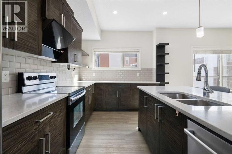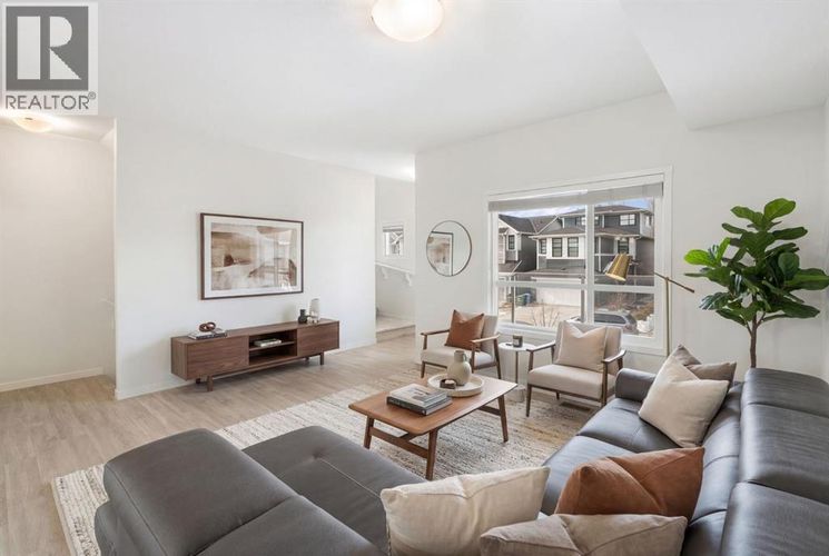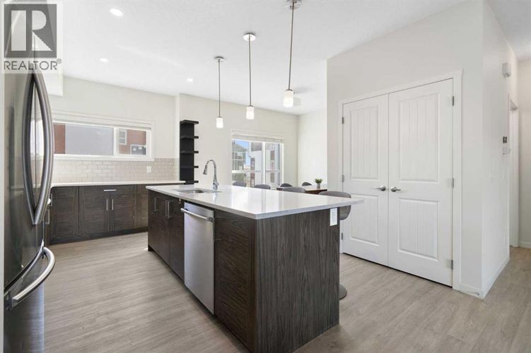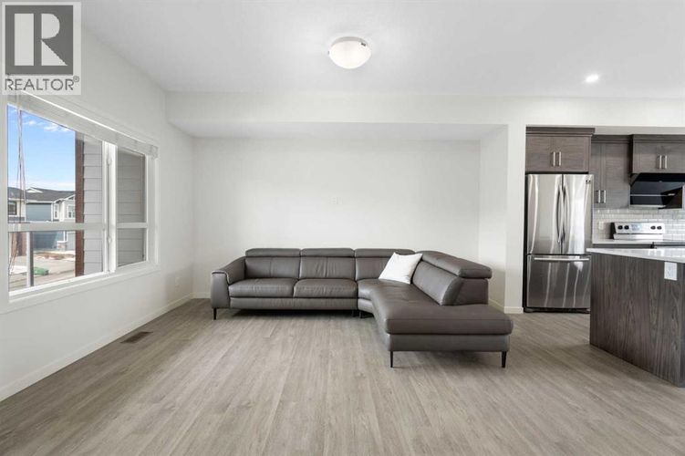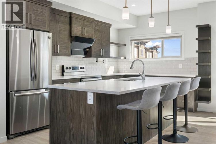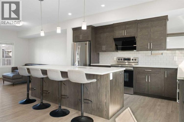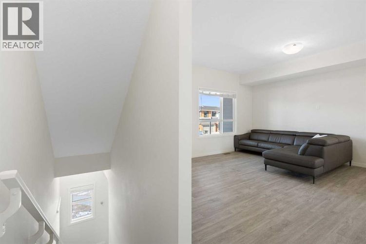 Secure this premium, move-in-ready 3-bedroom townhome in the heart of Harvest Hills! Built by multi-year “Builder of Choice” winner Cedarglen Living, this well maintained 1,700 sq. ft. home offers the perfect blend of award-winning design and modern upgrades.Step into a spacious foyer featuring a double attached side-by-side garage and a versatile flex room—complete with a stylish barn door—making it the ideal private gym or home office. The main level boasts 9-foot ceilings and durable luxury vinyl plank flooring throughout a seamless open-concept layout. The chef’s kitchen is built for hosting, fully equipped with full-height cabinetry, quartz countertops, a central island, and stainless steel appliances.While many townhomes struggle with summer heat, you will enjoy year-round comfort with full central air conditioning. The upper level offers a primary suite with a walk-in closet and a double-vanity ensuite, alongside two additional bedrooms and a dedicated laundry area with side-by-side machines for maximum utility. Located minutes from Deerfoot Trail, YYC Airport, schools, and parks, this no-carpet, premium-spec home won’t last. Contact your favorite Realtor to book a showing today! (id:26452)