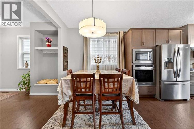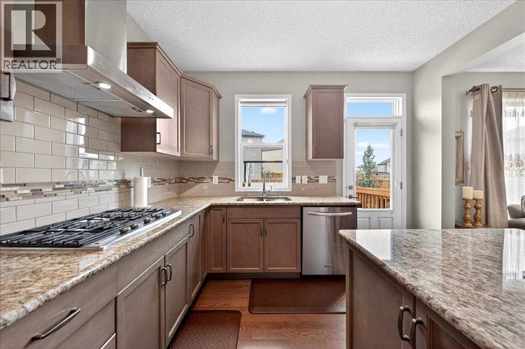 9’ CEILINGS ON MAIN AND UPPER FLOORS. 8’ DOORS THROUGHOUT. A FULLY FINISHED WALK-UP BASEMENT WITH A SEPARATE ENTRANCE—THIS HOME IS BUILT WITH INTENTION, AND IT SHOWS.Over 1,700 sq.ft. above grade, and not an inch of it is wasted. The kitchen is fully custom—GAS COOKTOP, CHIMNEY HOOD FAN, BUILT-IN OVEN AND MICROWAVE, stone countertops, and a central island with a breakfast bar that naturally becomes the spot everyone gathers. The sink is set under a rear-facing window, so you’re looking out to the backyard instead of a wall—small detail, BIG difference.The main floor holds its shape—defined living and dining areas, OAK HARDWOOD THROUGHOUT, and natural light that moves through the space without washing it out. Storage is handled thoughtfully here and continues throughout the home, giving everything a place without sacrificing clean lines.Upstairs, the CENTRAL BONUS ROOM is the kind people fight over—17’ x 15’ of actual, usable space that doesn’t need to double as anything else.Laundry is right where you need it, and storage shows up again in all the right ways—including a linen closet that’s big enough to matter.The primary bedroom is a standout—generous in size, FILLED WITH NATURAL LIGHT, and positioned to feel like a true retreat at the end of the day. A walk-in closet and well-laid-out ensuite complete it, featuring a LONG VANITY WITH AMPLE COUNTER SPACE that’s actually usable day-to-day. The secondary bedrooms are both properly sized, which is harder to find than it should be.The lower level changes how this home can be used. FULLY FINISHED WITH A WET BAR, FULL BATHROOM, AND A SEPARATE WALK-UP ENTRANCE—originally completed by the builder, not added later.Set up now for guests, but the flexibility is what sets it apart—space that can shift with you over time without needing to be reworked.Outside, it’s ready to go. FENCED YARD, deck, gas line, and a NEW FRIDGE already in place (2024). The details that usually get pushed down the list are already handl ed here.Cityscape continues to prove why people move in and stay—FAMILY-DRIVEN, connected, and growing in all the right ways, including a NEW JUNIOR HIGH NEARBY. Two short blocks away, a LARGE GREEN SPACE opens up with a soccer field, cricket ground, and the start of WALKING AND BIKE PATHS—so getting outside is part of your daily routine, not a weekend plan. With QUICK ACCESS in and out for commuting, WALKING DISTANCE TO THE TRANSIT STOP THAT HEADS TO THE C TRAIN - the location works just as well during the week as it does on weekends.No filler. No compromises. Just a home that delivers where it counts—and keeps delivering after you move in. Take the next step and see it for yourself. Call your agent to book a showing. (id:26452)