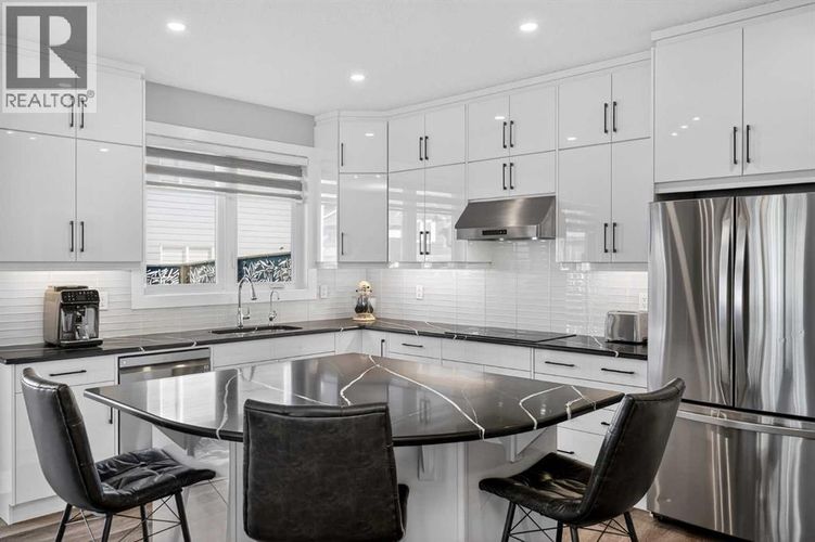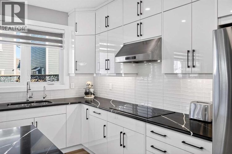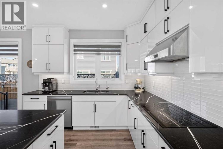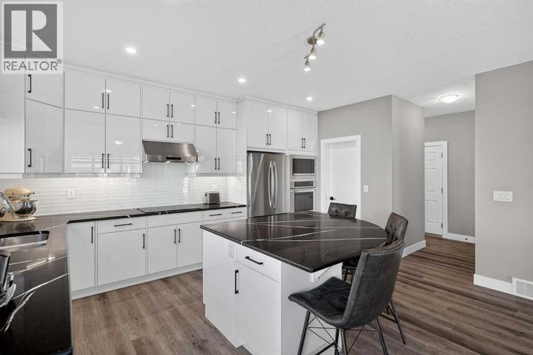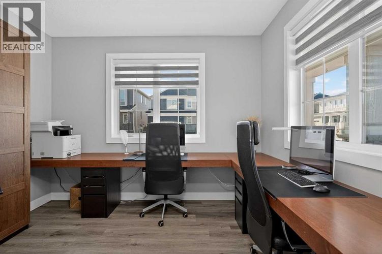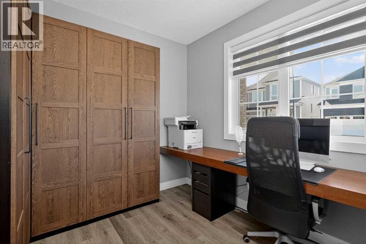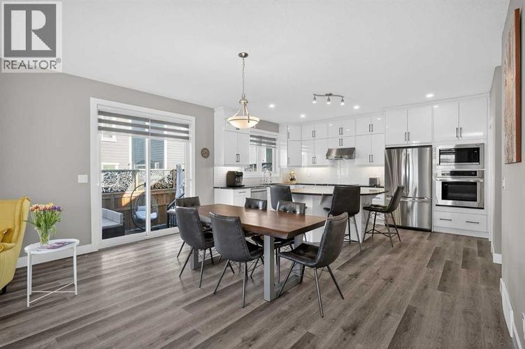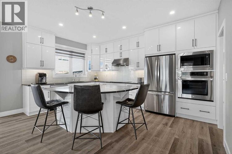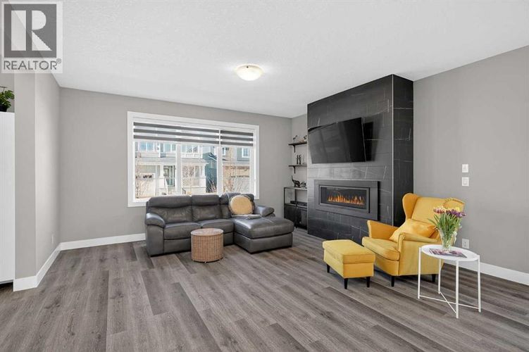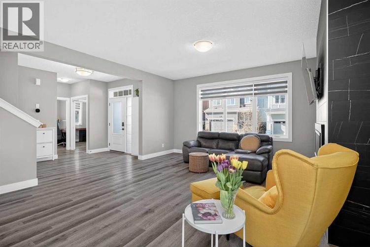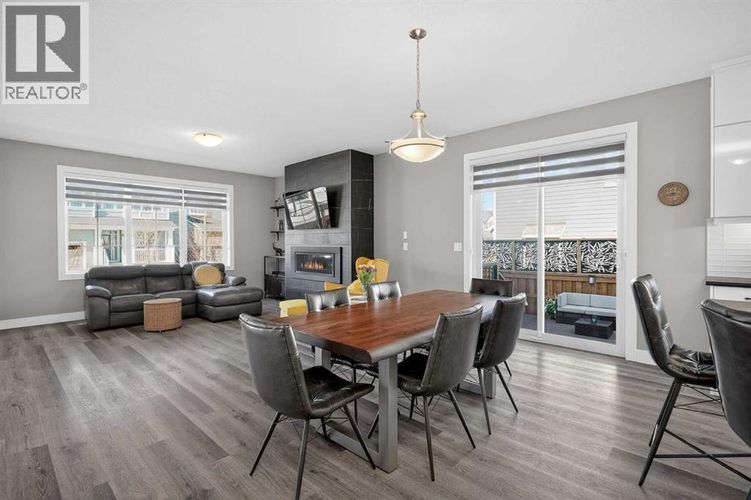 Set on a prominent corner lot in Yorkville, this fully finished 2,414 sq ft home makes a strong first impression with its upgraded Georgian Colonial exterior—an elegant blend of brick and Hardie board, complemented by a welcoming wraparound front porch that adds both charm and usable outdoor space. Inside, the layout is both functional and refined. The main level features 9’ ceilings and durable LVP flooring, with a spacious kitchen designed to anchor the home. Quartz countertops, full-height cabinetry, a built-in wall oven, and a distinctive curved island bring both style and practicality together. The living room is warm and inviting, centred around a 45" fireplace with a full-height tile surround, while the dining area offers a natural space for everyday meals or hosting. There’s a main floor office with a built-in desk and cabinetry that stays, and a mudroom that goes beyond standard—with a built-in dog wash that doubles as the perfect spot for muddy boots or cleanup after a long day. Upstairs, enjoy the grand feeling of 9’ ceilings with four well-proportioned bedrooms, including a primary suite with a 5-piece ensuite and walk-in closet. There’s even a bright bonus room, adding flexibility for relaxing or gathering, and the laundry room is finished with custom-built-in cabinetry for added convenience. A second full 5-piece bathroom, with an additional central cabinet, completes the upper level. The builder professionally finished the basement, extending the living space with a large family room, a fifth bedroom, a 3-piece bathroom, and a substantial storage area. The pool table can be included, creating an easy transition into a fully usable lower level. Outside, the landscaping is complete and thoughtfully designed, featuring a large low-maintenance deck, stonework, and a fully fenced yard that’s ready to enjoy. The corner lot provides additional light and space, complemented by a double-attached garage, driveway, and ample street parking. The home is also equi pped with a Kinetico water system, adding an extra layer of everyday comfort and quality. Yorkville is a growing southwest Calgary community known for its wide streets, planned green spaces, and pathway connections. With convenient access to Macleod Trail and Stoney Trail, along with nearby shopping, dining, and everyday amenities, it offers a balanced lifestyle with both accessibility and room to grow. A well-executed home with meaningful upgrades, a functional layout, and a finished outdoor space that’s ready from day one. (id:26452)