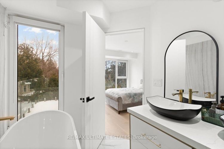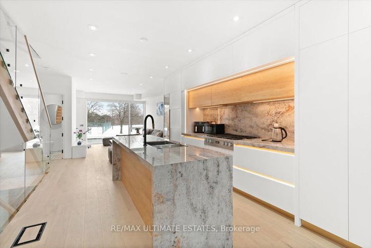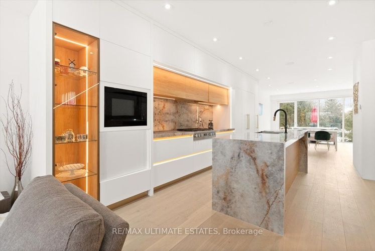 custom-built high end detached home.Unparalleled Luxury Finishes Throughout. Experience the modern life style in a dynamic vibe. The first three storey detached house in the entire neighbourhoods. Taste of a luxury midtown house. Exquisite attention to detail and refined finishes. The elegant facade is graced with ACM complemented the oversized German manufactured windows with extruded aluminum.The main floor is made for entertaining. Spectacular modern architecture designed layout, when art and style embrace each other, and create a stand-out house plan. Stupendous gourmet kitchen opens into the great room, with walk-out to the spacious back patio. Take the Federal elevator up or down. It services all four levels.There are four beautifully proportioned bedrooms in the main unit in which two have their own bathrooms. All baths are exceptionally appointed.There are two laundry areas in the house: a full laundry closet on the second level and another laundry room on the lower level unit of the house. There is a central vacuum system, light, durable with the best suction, easy and comfortable.Five-star hotel-feel in the primary bedroom suite on the second floor. Sensational! Morning coffee or evening wine from the beverage area. Opening to a glass wall ensuite, with touches such as the heated rain and jet showers, and heated bathroom floor. Bathroom also includes hidden medicine cabinet and towel closets.Parking: Built-in 1 car garage and private driveway. Park your car on the heated private drive (no snow to shovel) or in the garage. Also, the front steps are also heated with lighting. A nice mudroom including spacious closet right coming into the house from the garage.Heated floors in the bright lower level of the house, no waste of energy to warm it up. An in-law one bedroom plus den unit, a beautifully built kitchen cabinets, a full bath, and a separate laundry room. Last but not least, heated wide driveway can fit 2 cars in a row.Hollywood, Earl Haig.